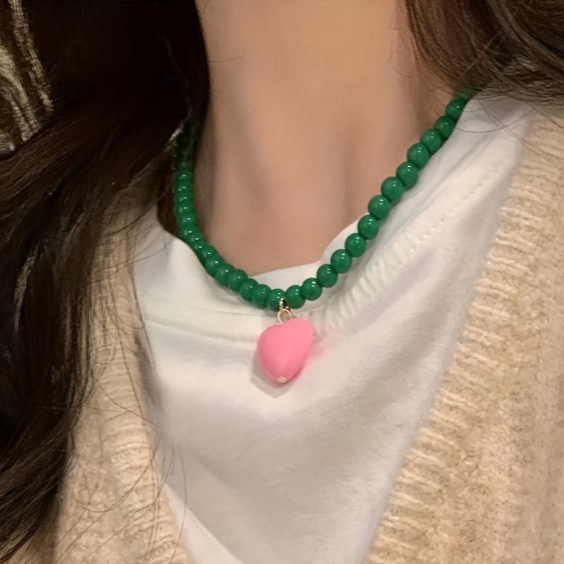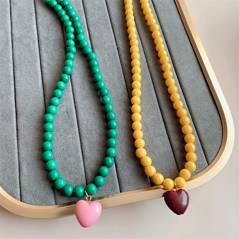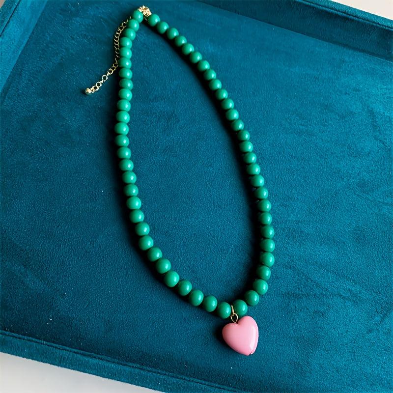 This handcrafted pendant necklace is a perfect accessory for women. It features a colorful resin heart pendant that adds a boho touch to any outfit. Ideal for daily wear and gift giving, this necklace is suitable for all seasons.