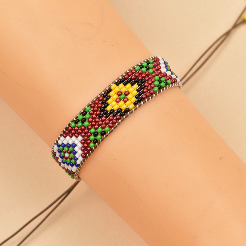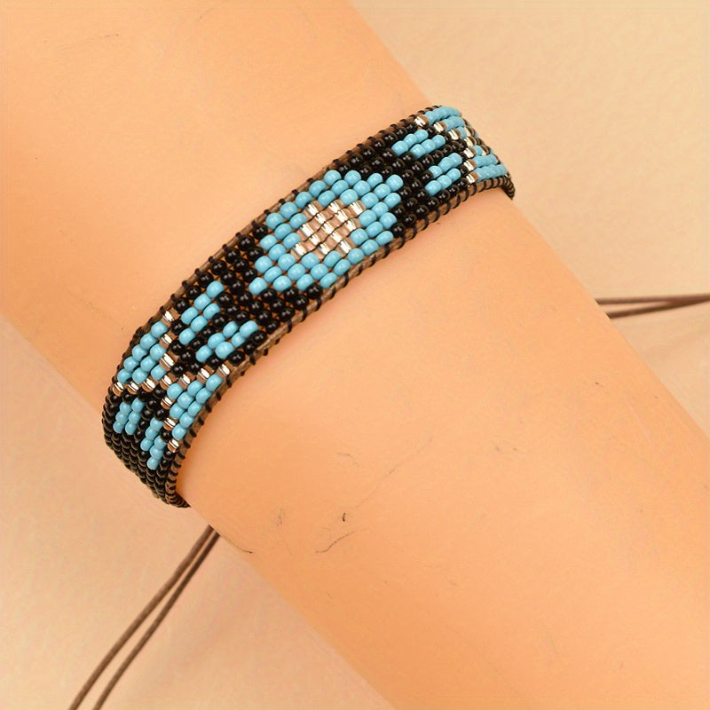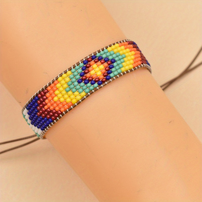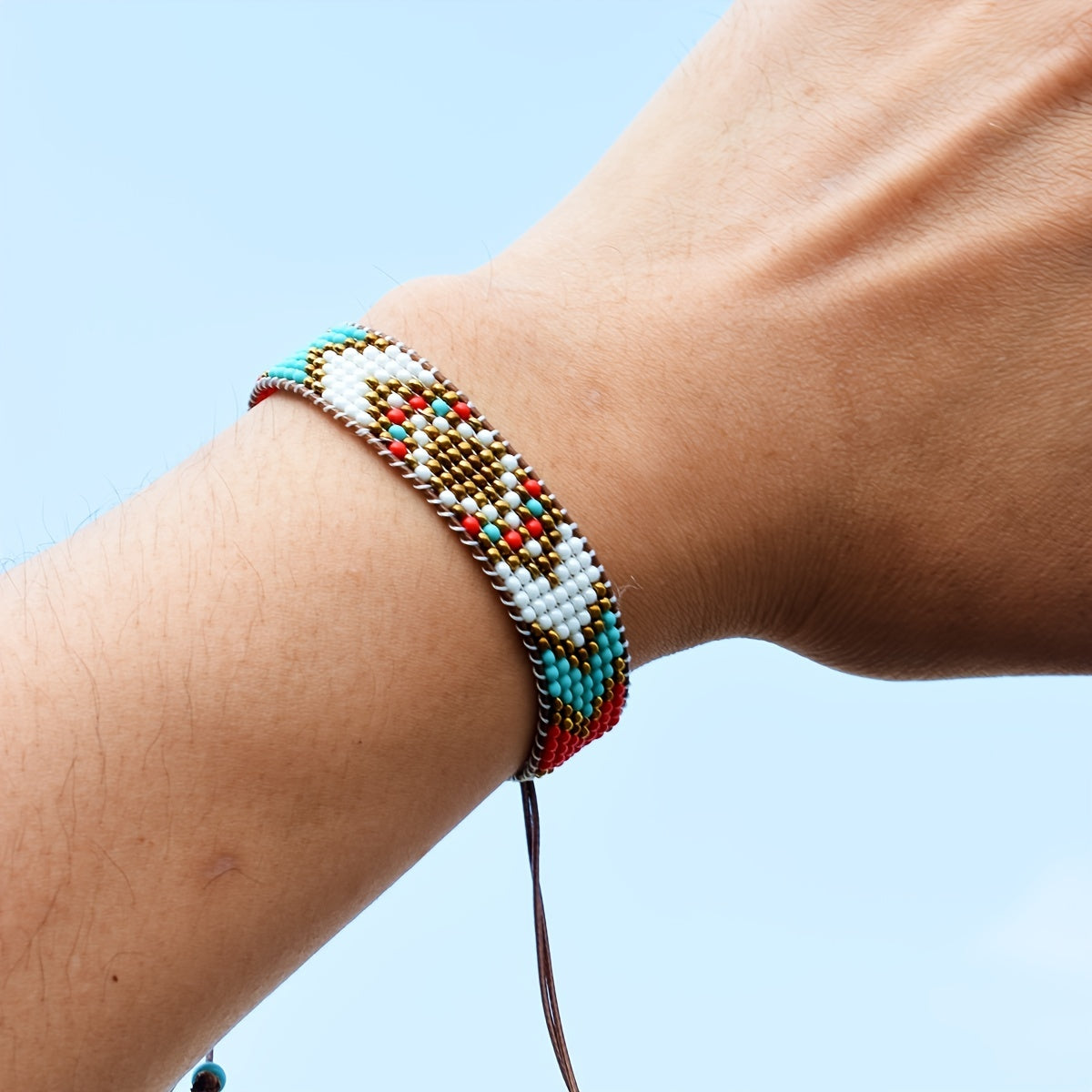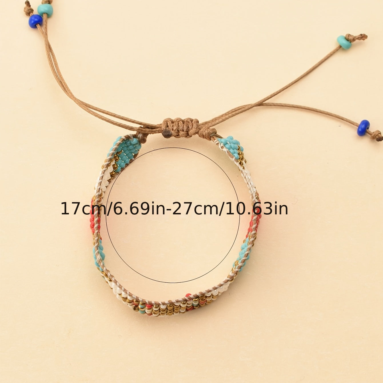 This boho style braided bracelet is a perfect summer beach accessory for women and girls. It features Mexican-inspired design with rice beads, adjustable fit for comfort, and adds a touch of friendship hand jewelry to your look.