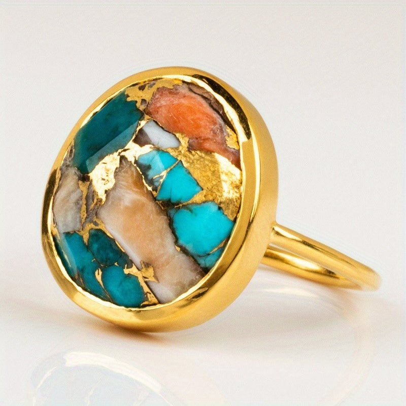 This boho style ring features an egg-shaped design with inlaid artificial turquoise, making it a perfect accessory to match your daily outfits or add a touch of elegance to your party look. It is also a great birthday gift for females.