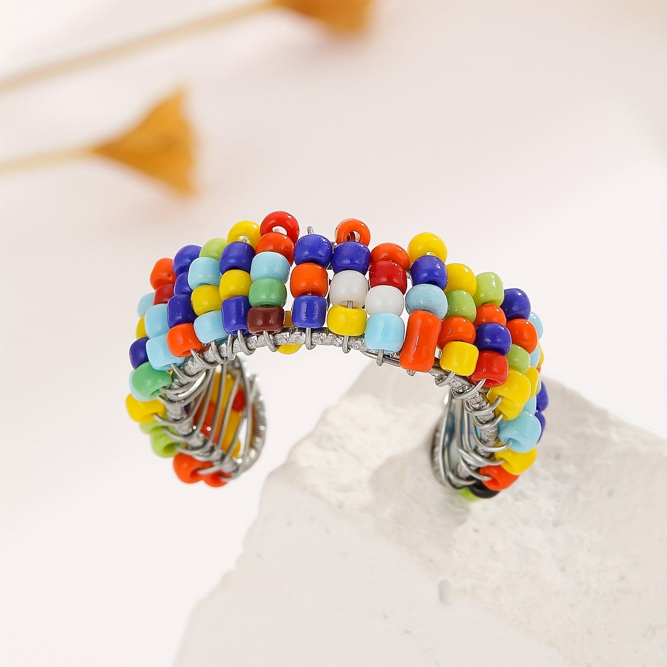 This boho style silver plated ring features colorful spinning beads that add a fun and vibrant touch to your look. The adjustable design allows for a comfortable fit, while the anti-anxiety properties of the beads can help promote relaxation and calmness.