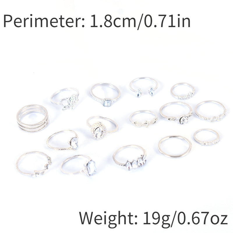 Add a touch of bohemian charm to your outfit with this set of 15 stacking rings featuring heart and vine shapes. Perfect for daily wear or party accessories.