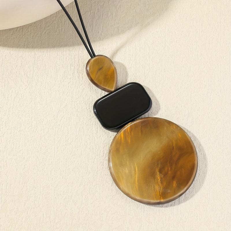 Elevate your style with this Bohemian Tribal Style Pendant Necklace featuring resin geometric irregular charms. Perfect for daily wear or parties, this versatile necklace suits any season without any plating for a natural look.