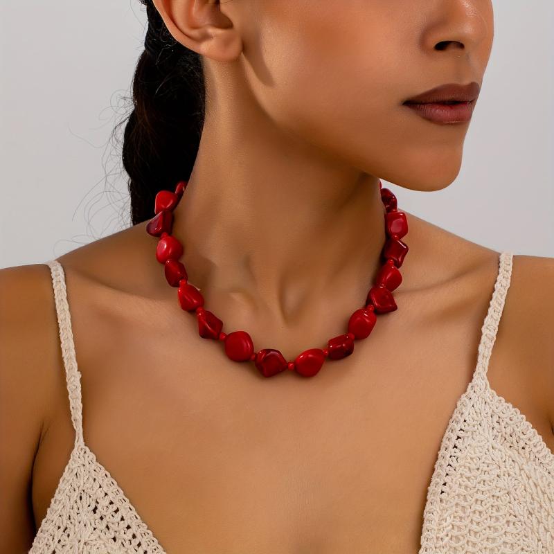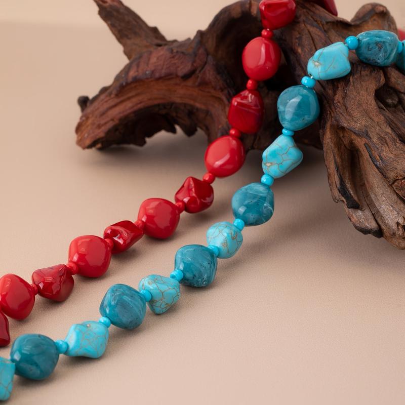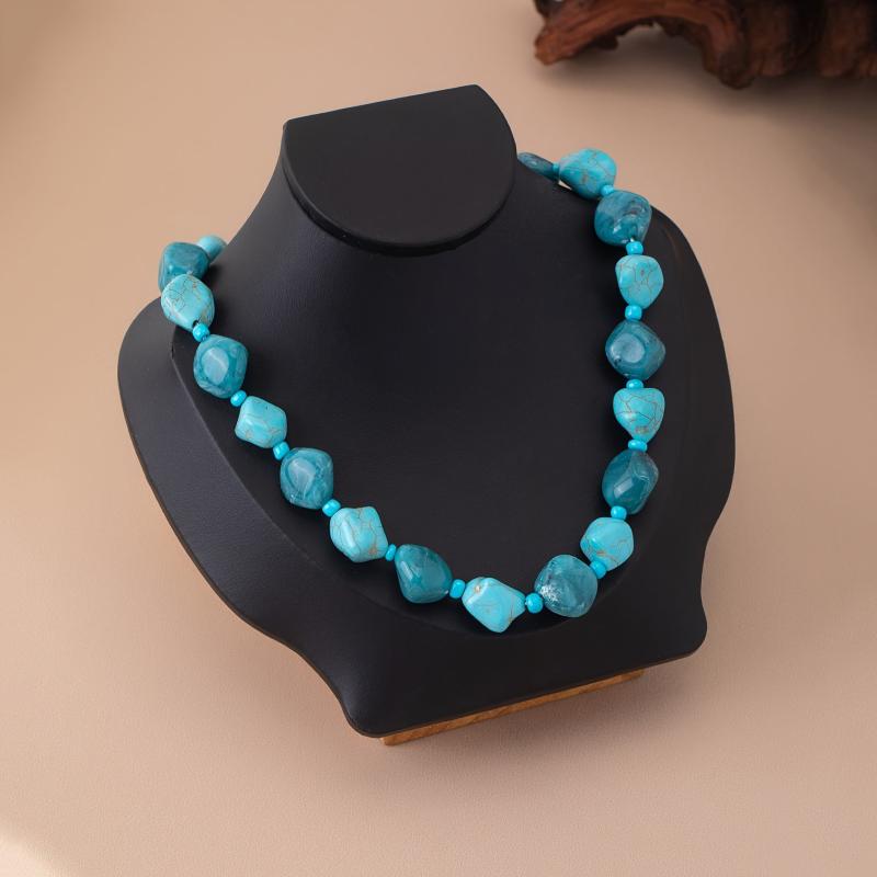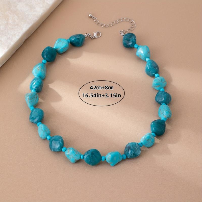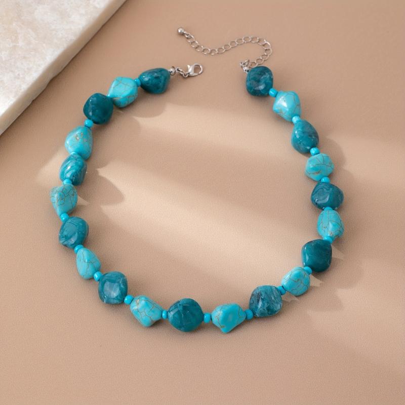 Add a touch of bohemian flair with this unique turquoise beaded necklace. The irregular stone patterns make it perfect for casual attire and vacation looks. Lightweight and stylish, it's a versatile accessory.