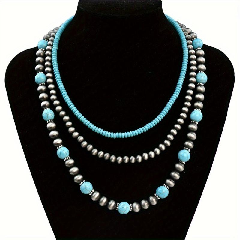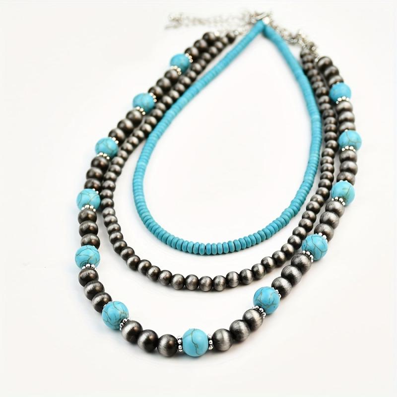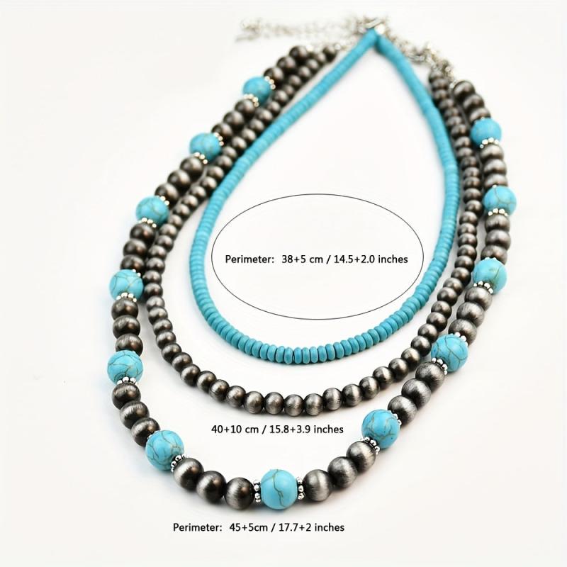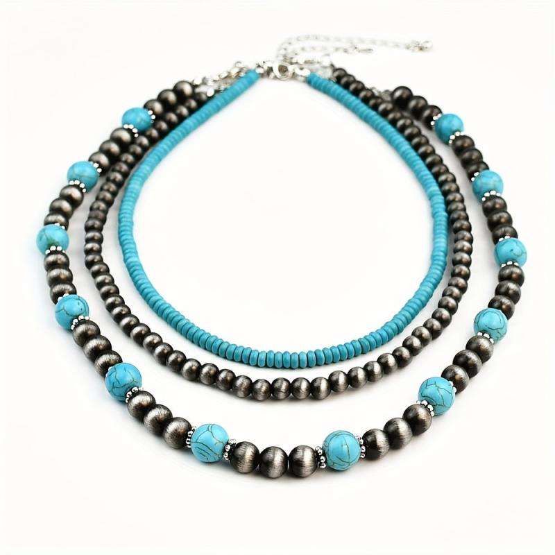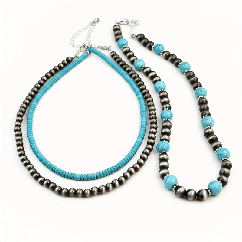 Elegant vintage-inspired necklace set featuring synthetic turquoise stones, perfect for daily wear or holiday boho jewelry.