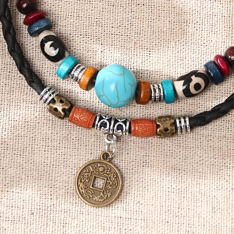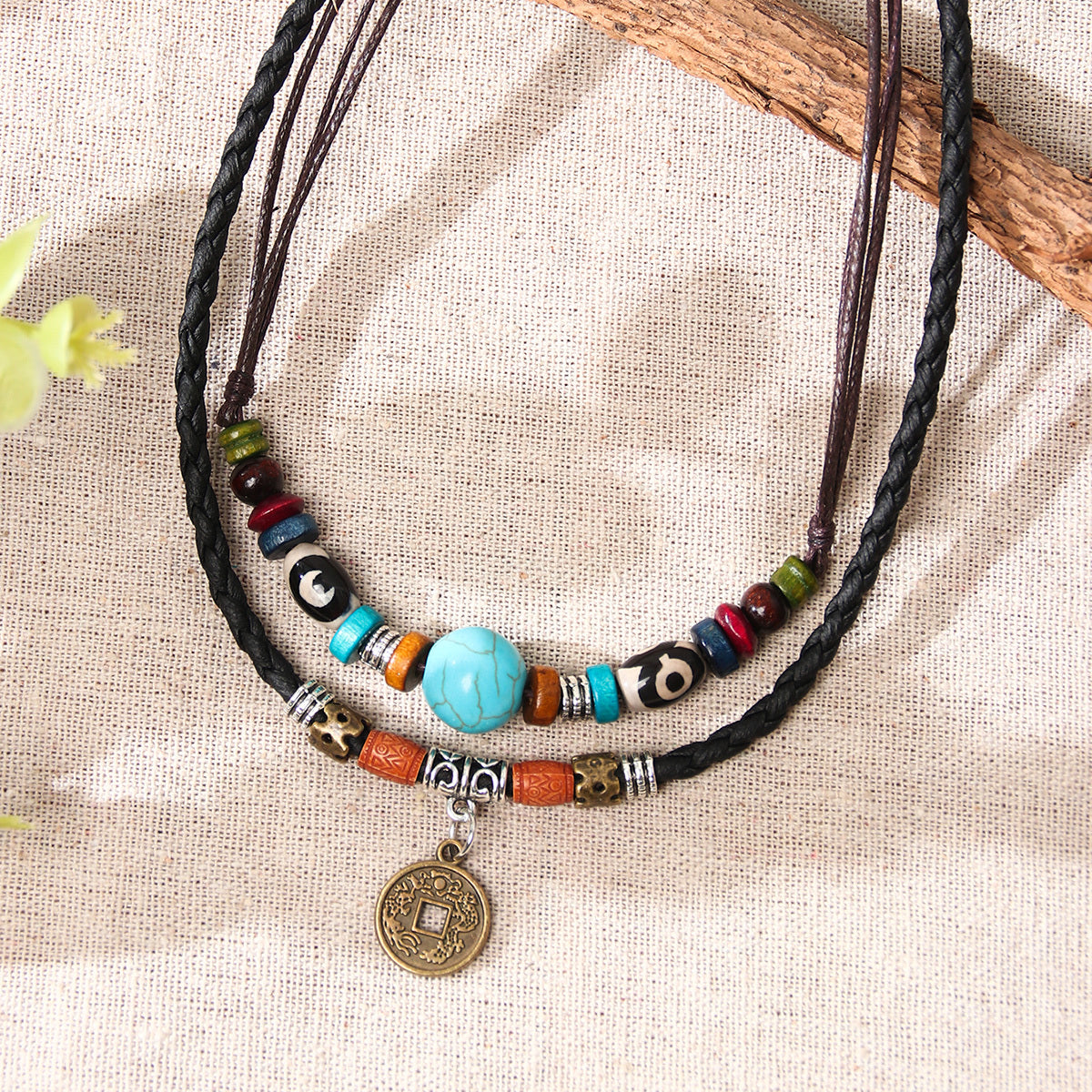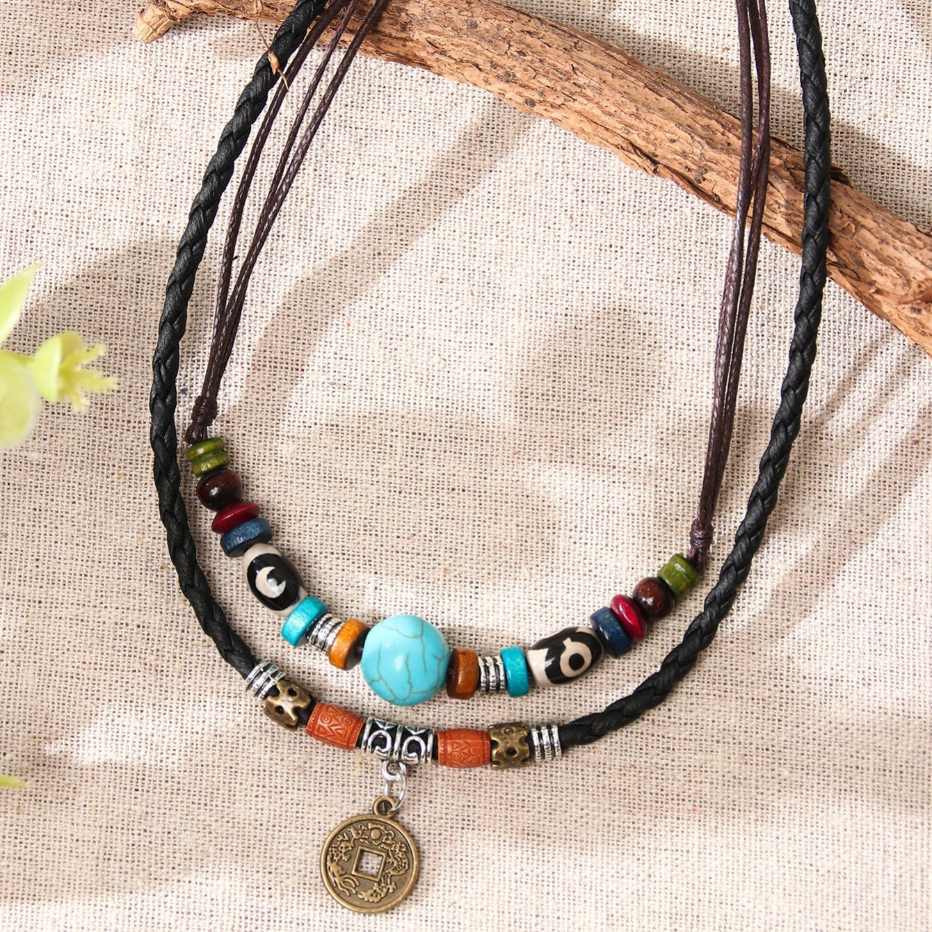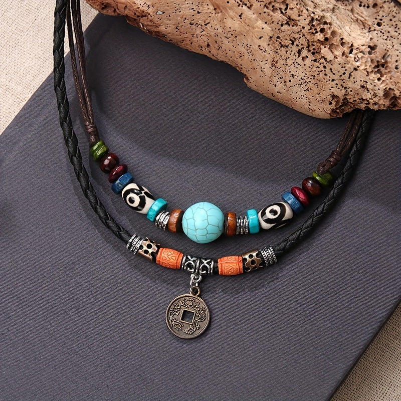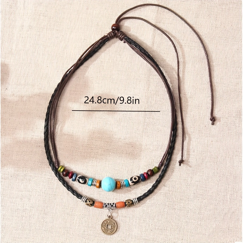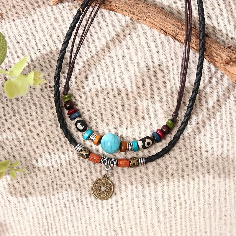 Add a touch of personality and style with this boho turquoise PU leather coin necklace. Perfect for parties and everyday wear.