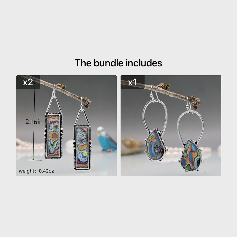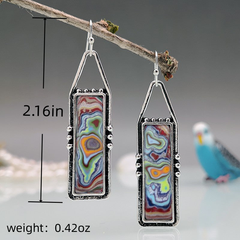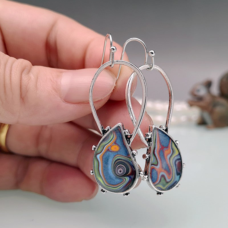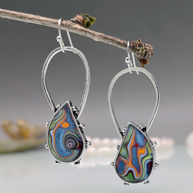 Add a touch of boho chic to your look with these unique vintage inspired spiral marble pattern stone drop earrings. Perfect for parties and holiday events.