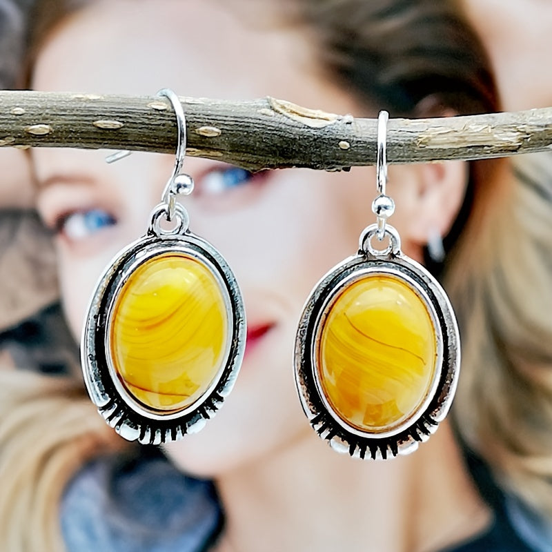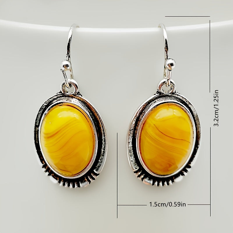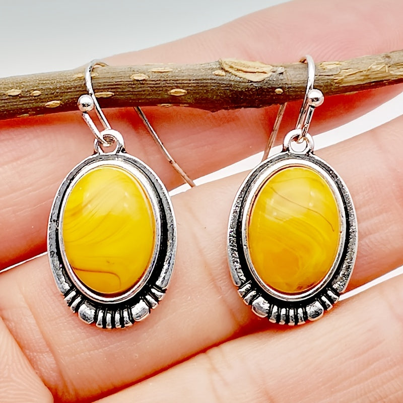 Add a touch of bohemian style to your look with these stunning yellow turquoise dangle earrings. Made with 925 silver, these earrings are a beautiful addition to any woman's jewelry collection.