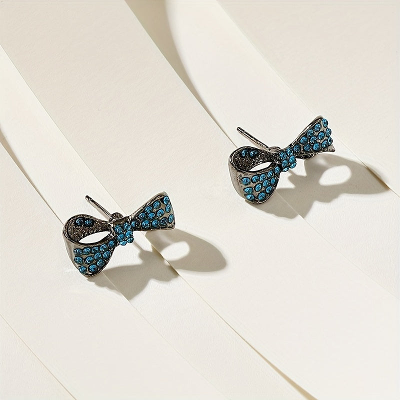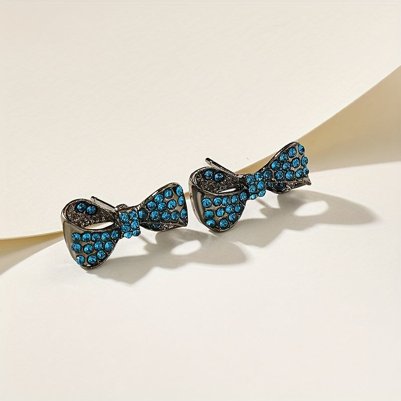 Add a touch of glamour to your outfit with these bowknot stud earrings featuring a rhinestone accent. Perfect for daily casual wear, these earrings are made of zinc alloy with an 18K gold plating.