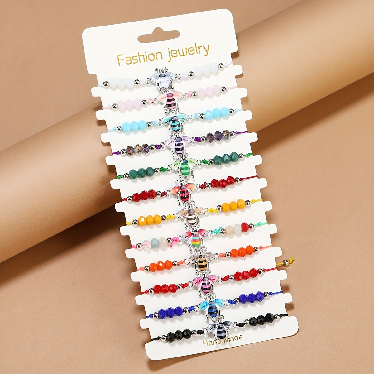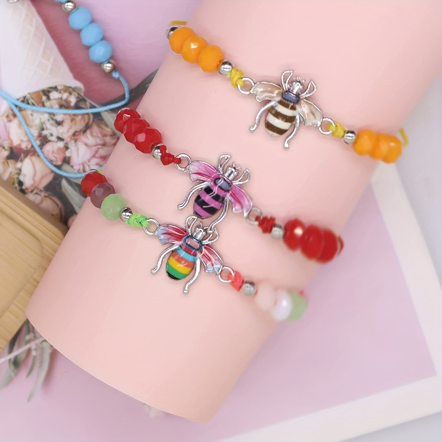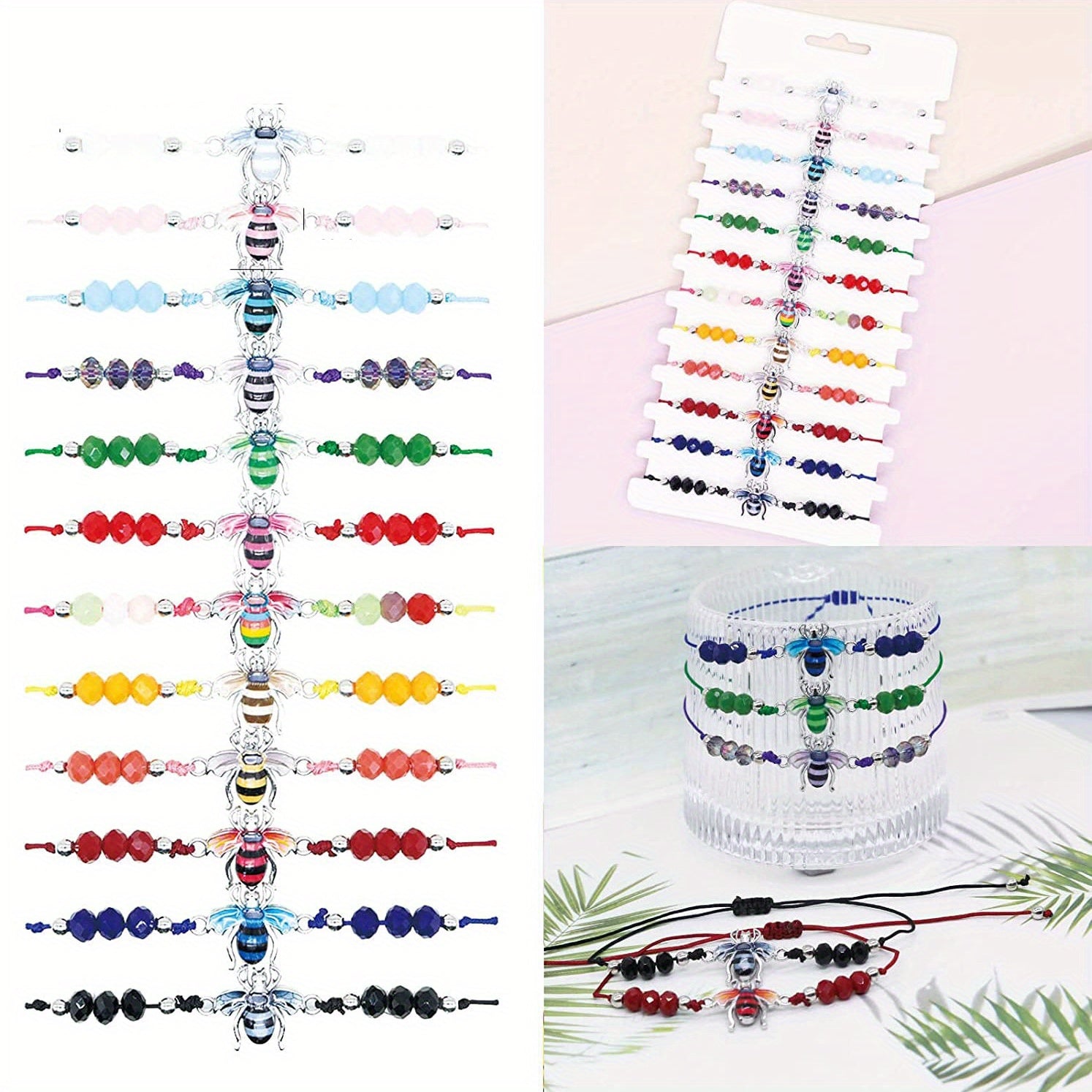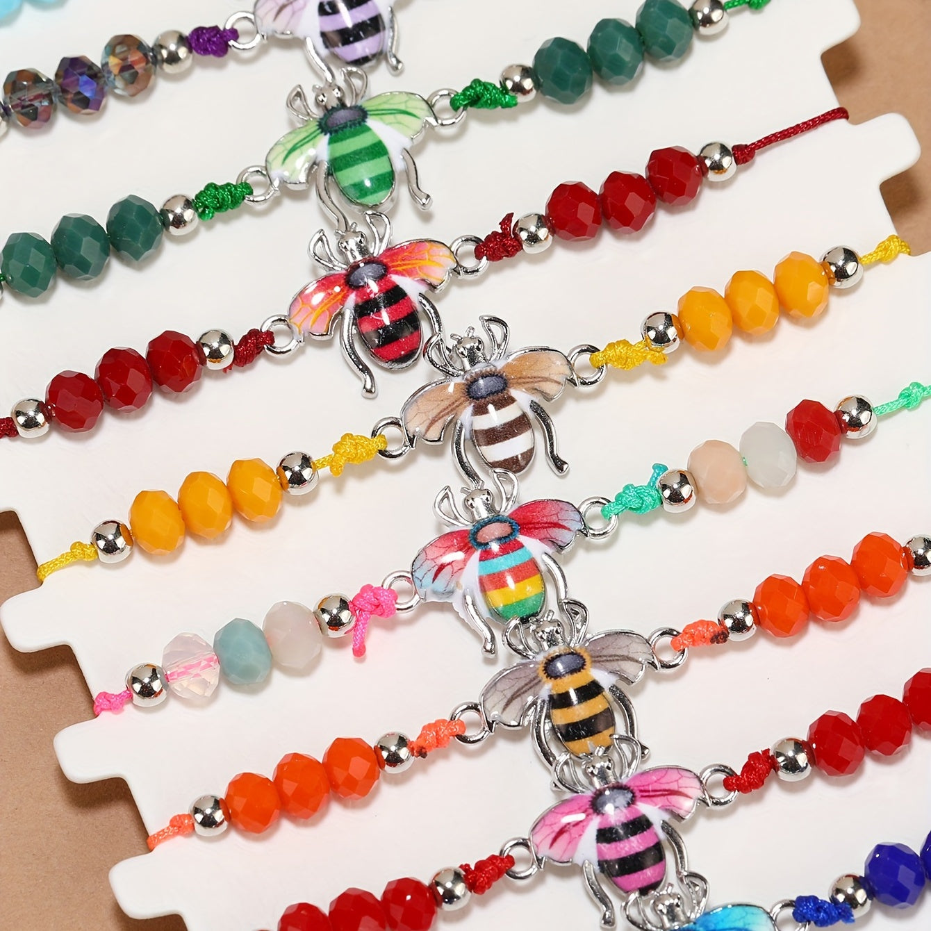 This colorful crystal beads bracelet set is perfect for friendship gifts or party favors. Each bracelet features vibrant beads and a cute bee charm.