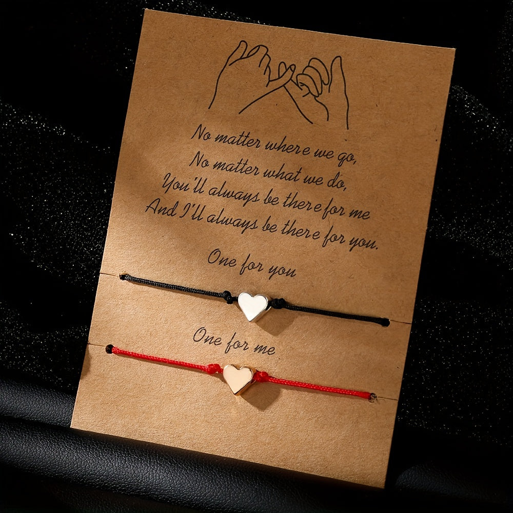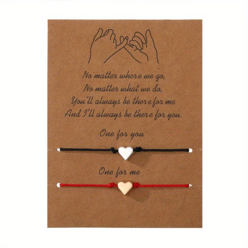 This stylish bracelet features a braided rope design with a love heart charm. It comes with a blessing paper card for a thoughtful touch.