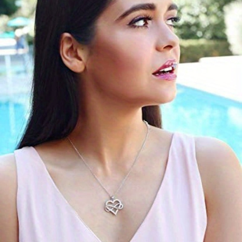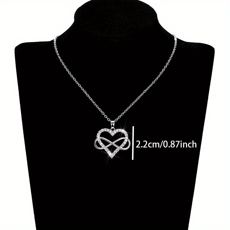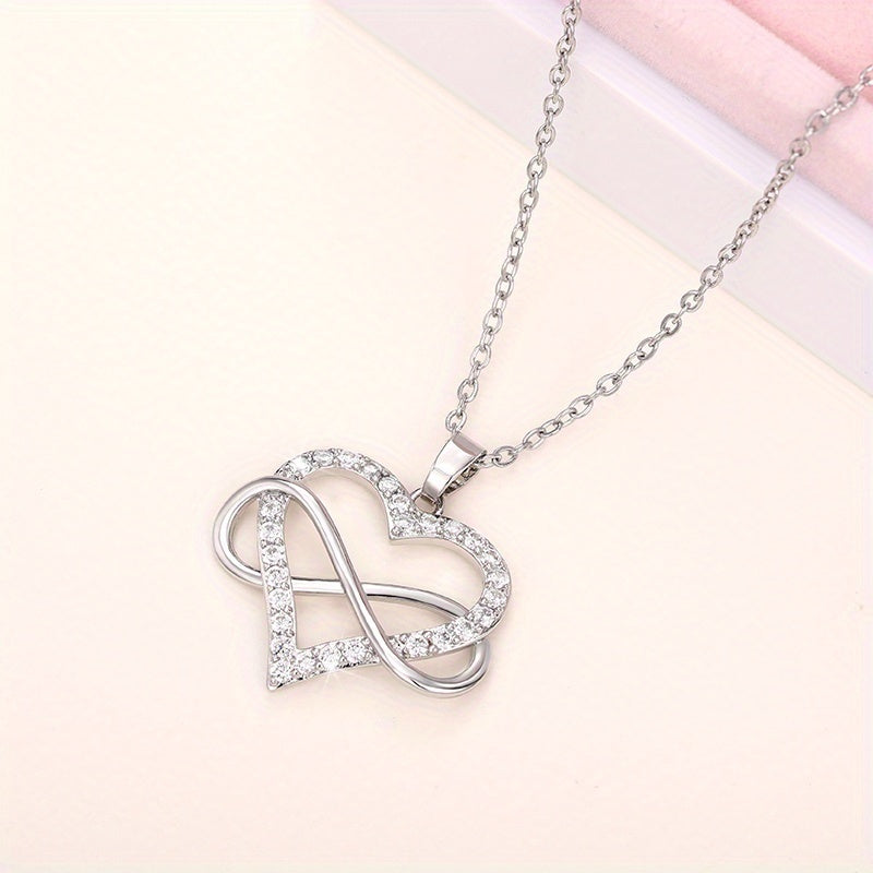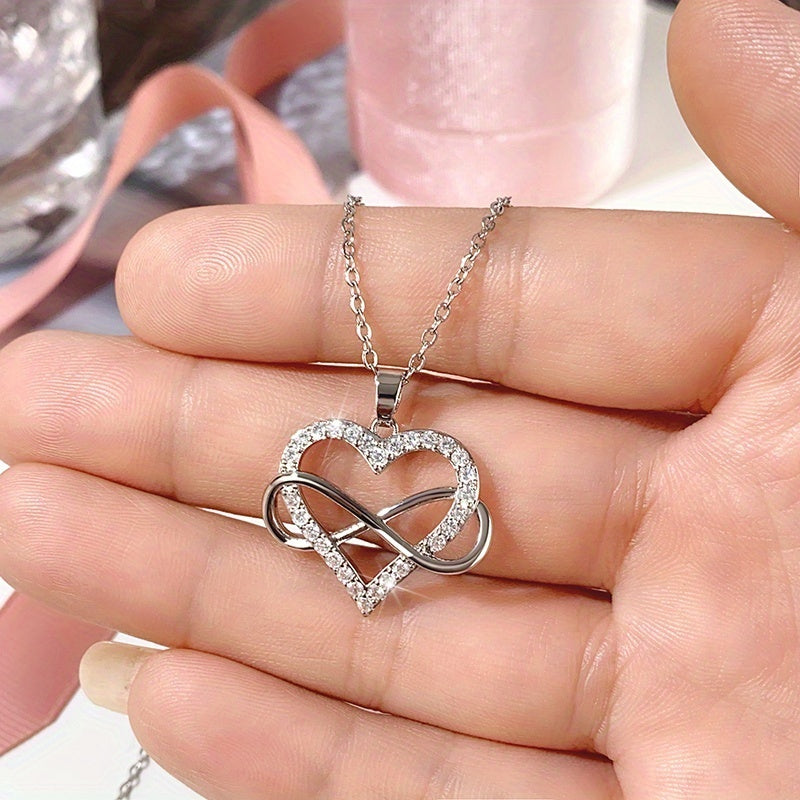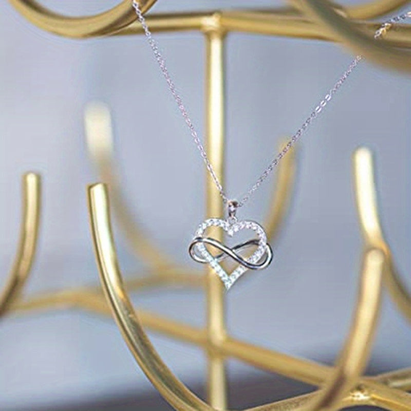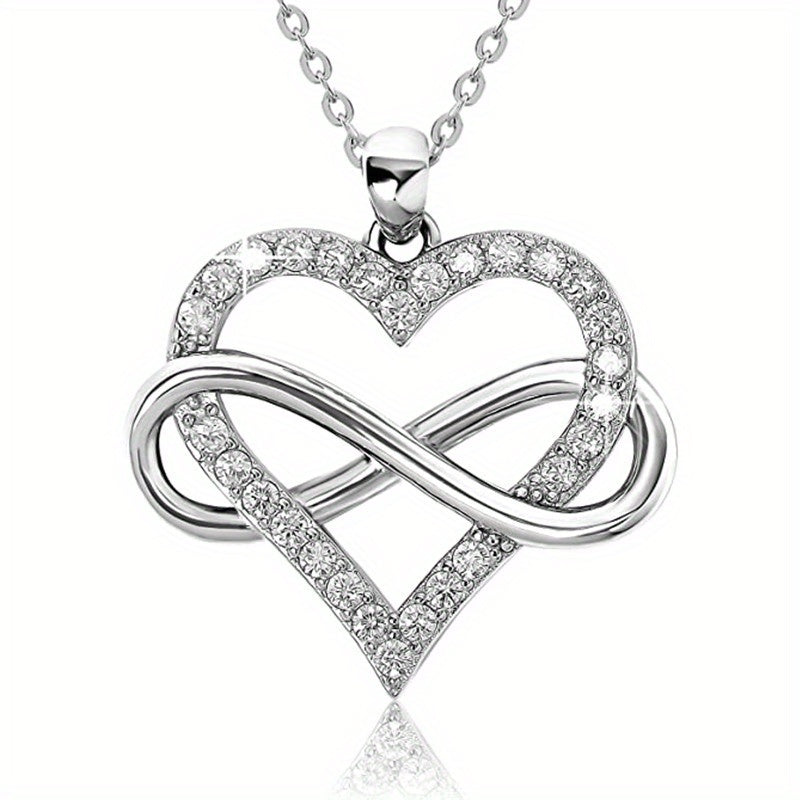 Elegant and charming necklace perfect for weddings. Made of 925 silver plated with zircon stones. Features an infinity heart design that symbolizes eternal love.