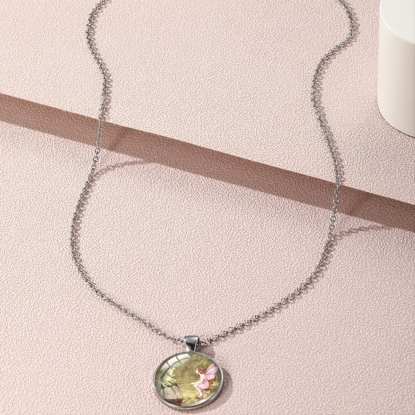 Beautiful pendant necklace featuring a bronze frog and fairy design, perfect for mythology lovers.