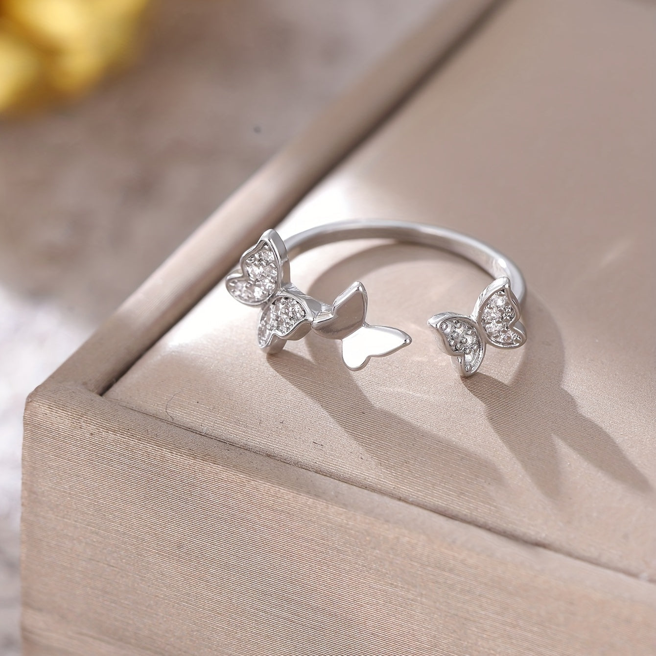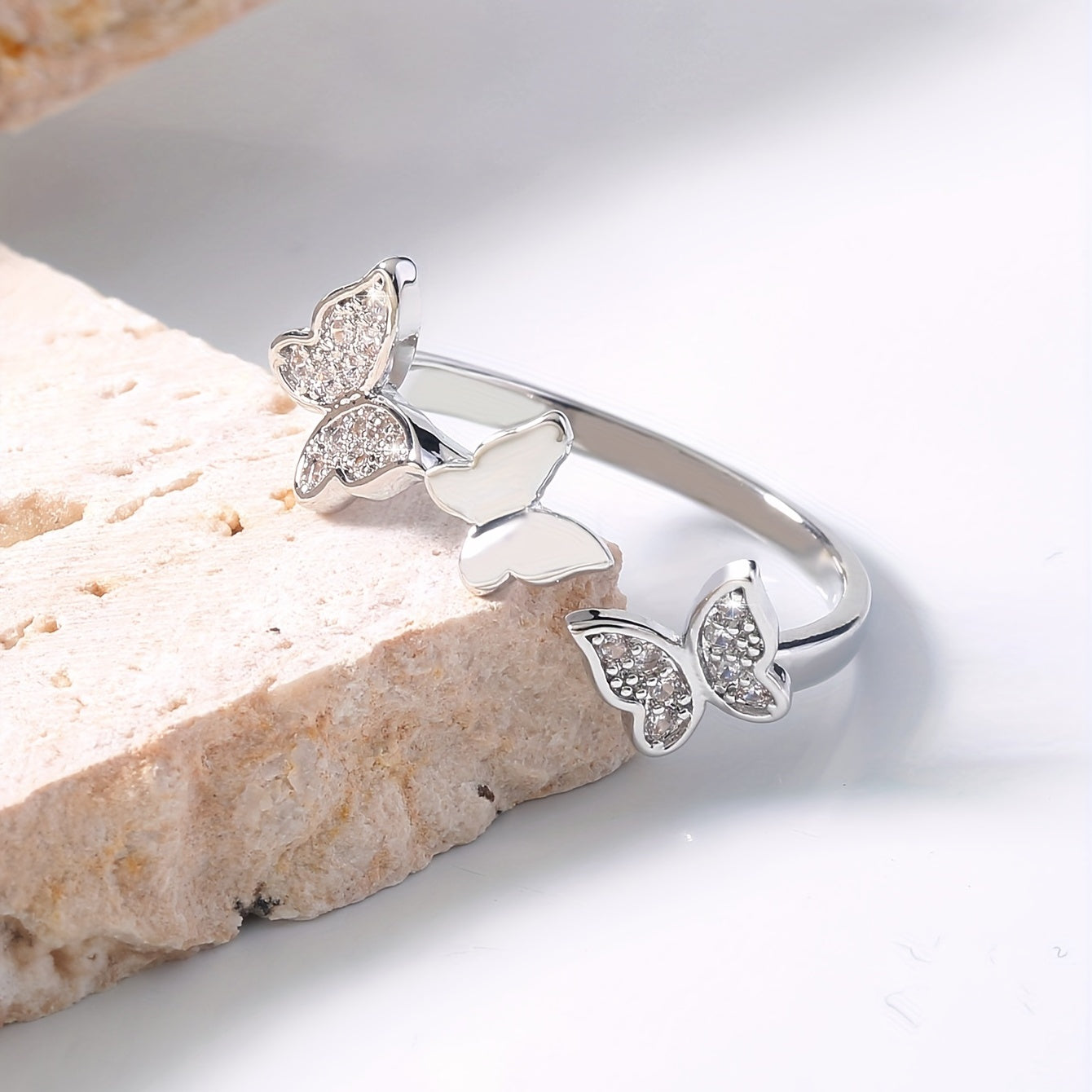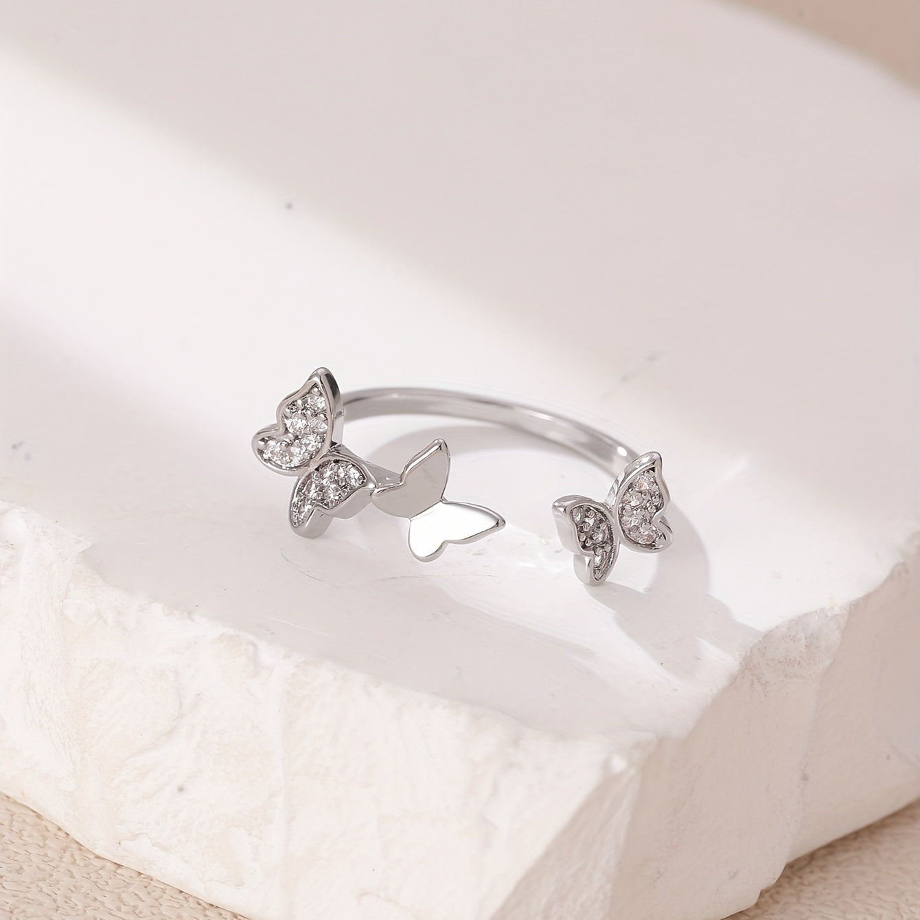 Add a touch of elegance to your look with this dainty butterfly cuff ring featuring shimmering zircon inlay. Perfect for daily wear or special occasions. Ideal birthday gift for girls.
