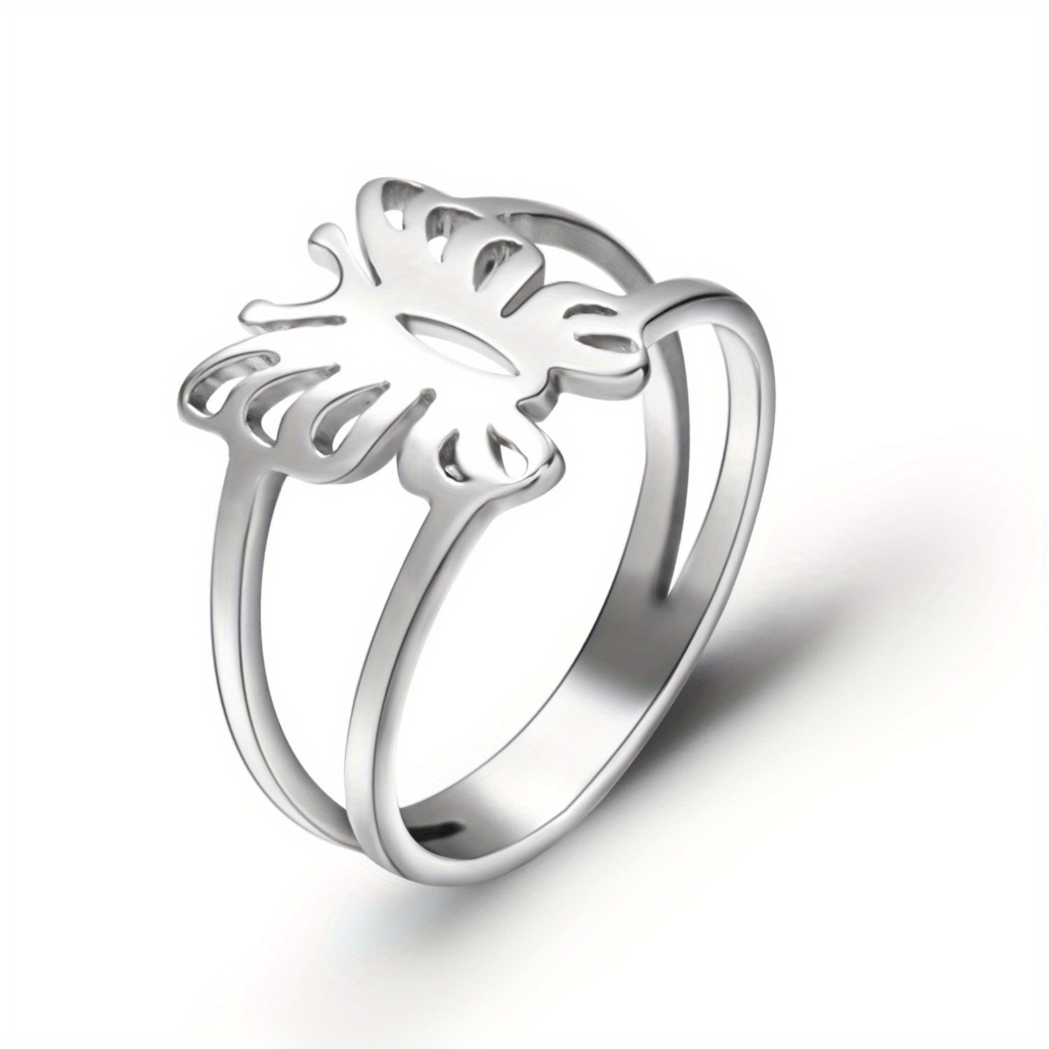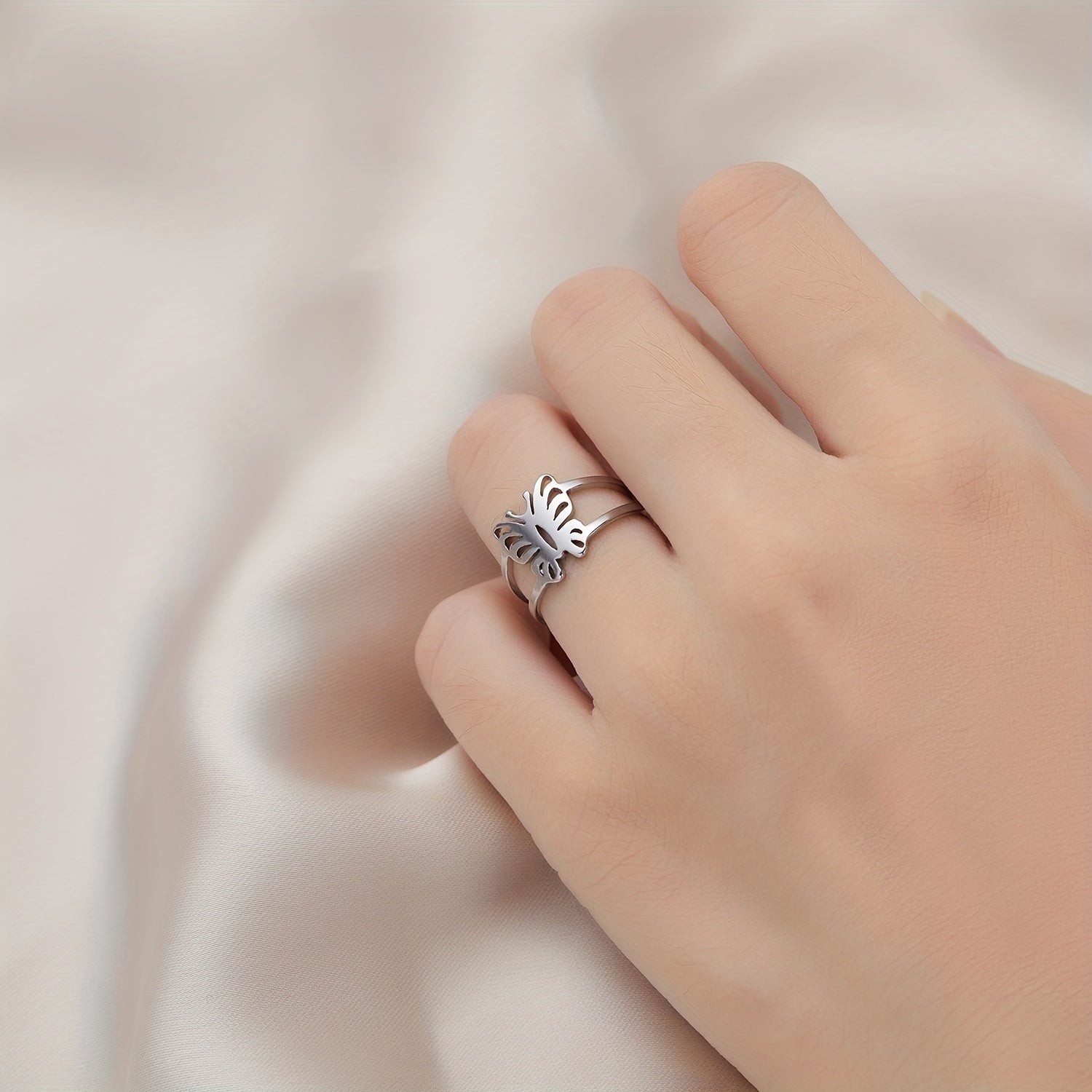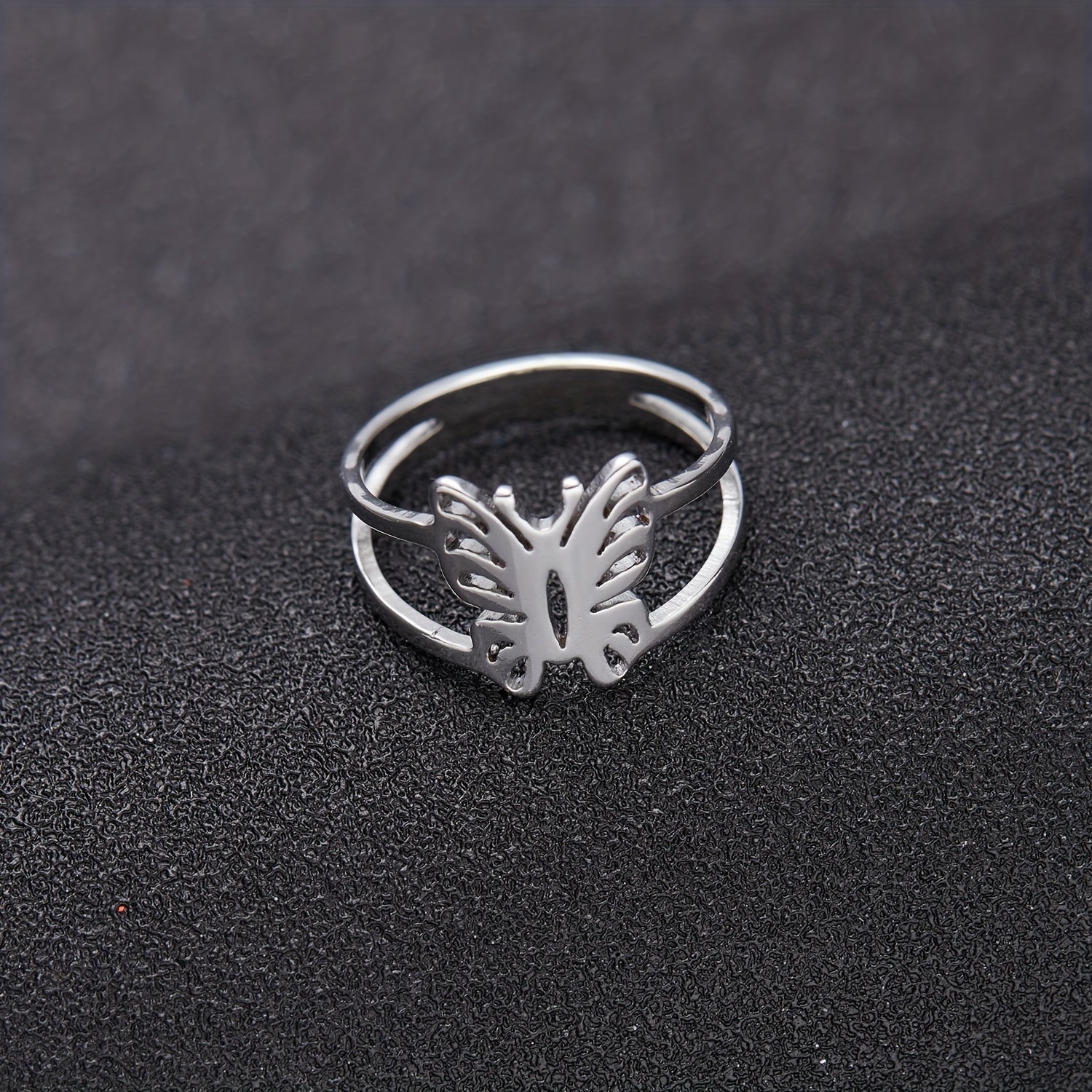 This hollow out butterfly finger ring features a minimalist design. Made of durable stainless steel, it's a stylish accessory for any occasion.