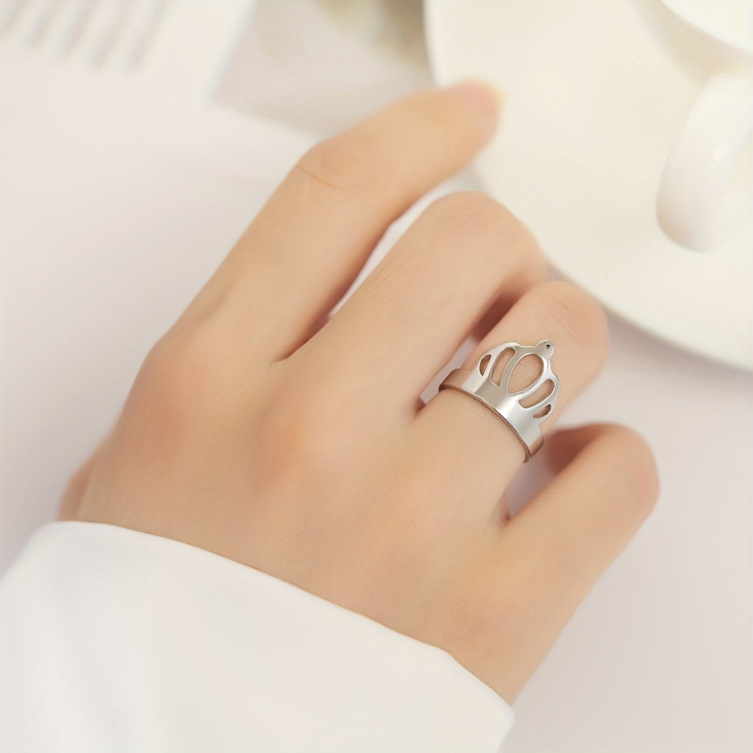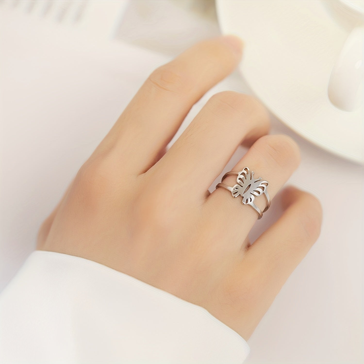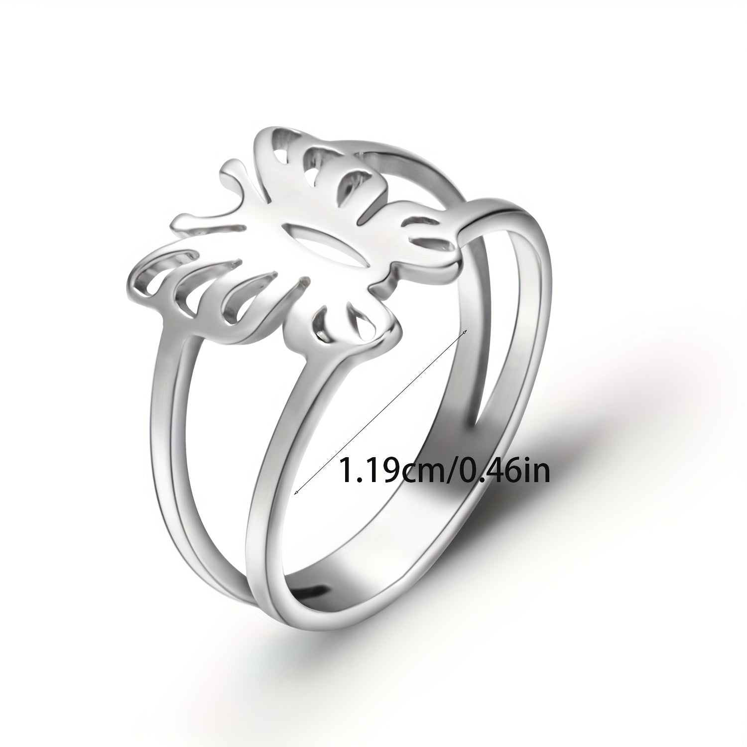 This hollow out butterfly finger ring features a minimalist design. Made of durable stainless steel, it's a stylish accessory for any occasion.