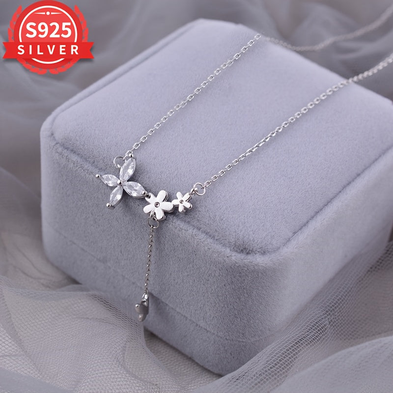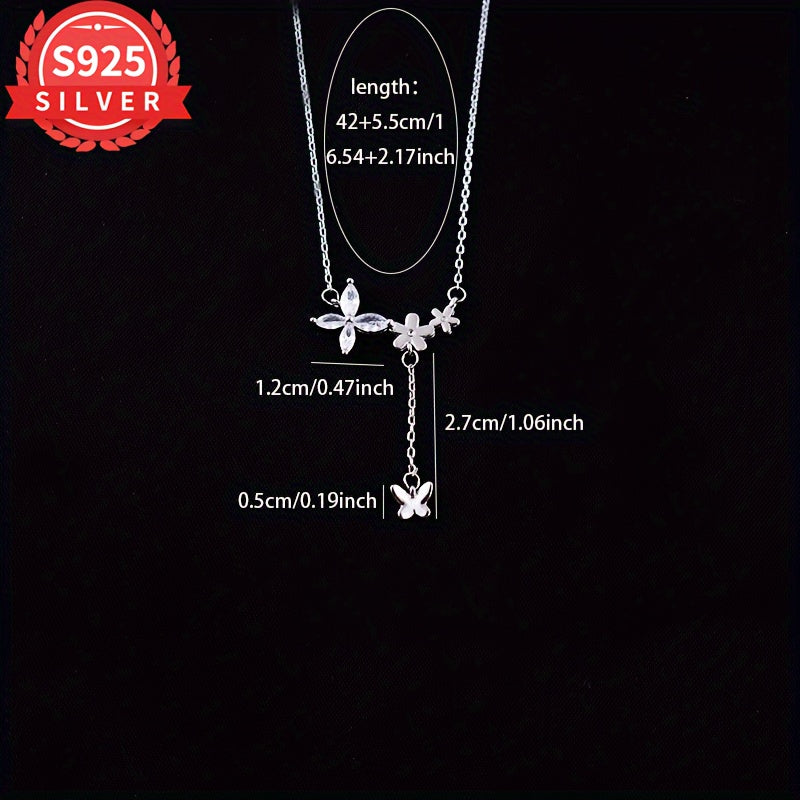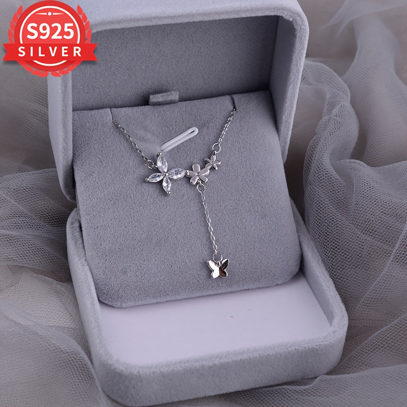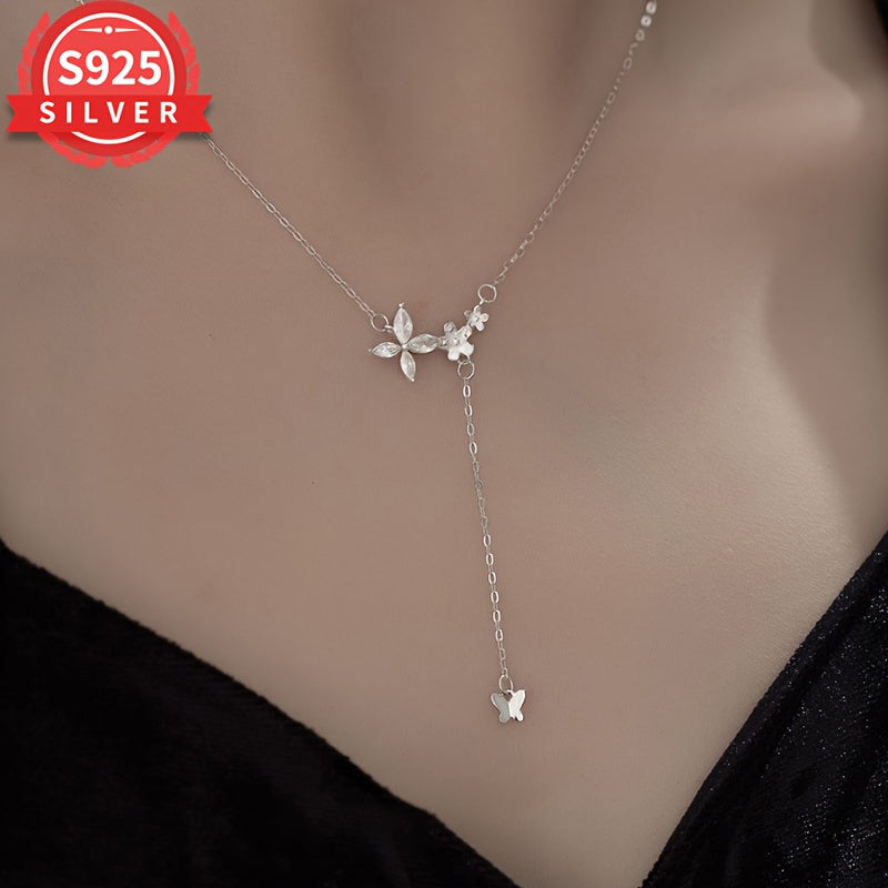 Elevate your look with this seasonless style butterfly necklace. Made of hypoallergenic 925 sterling silver, this adjustable floral clavicle chain is perfect for any occasion. It comes in a beautiful anti-tarnish box, making it a great gift option.