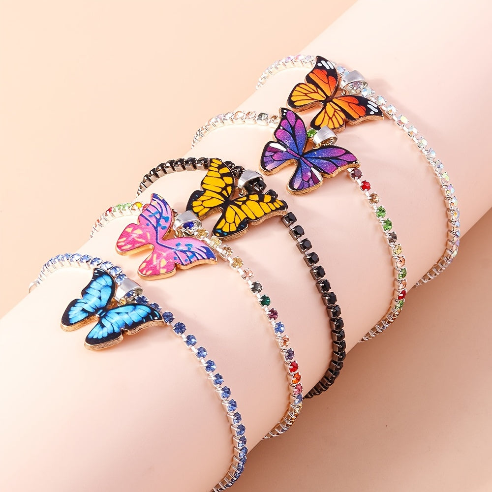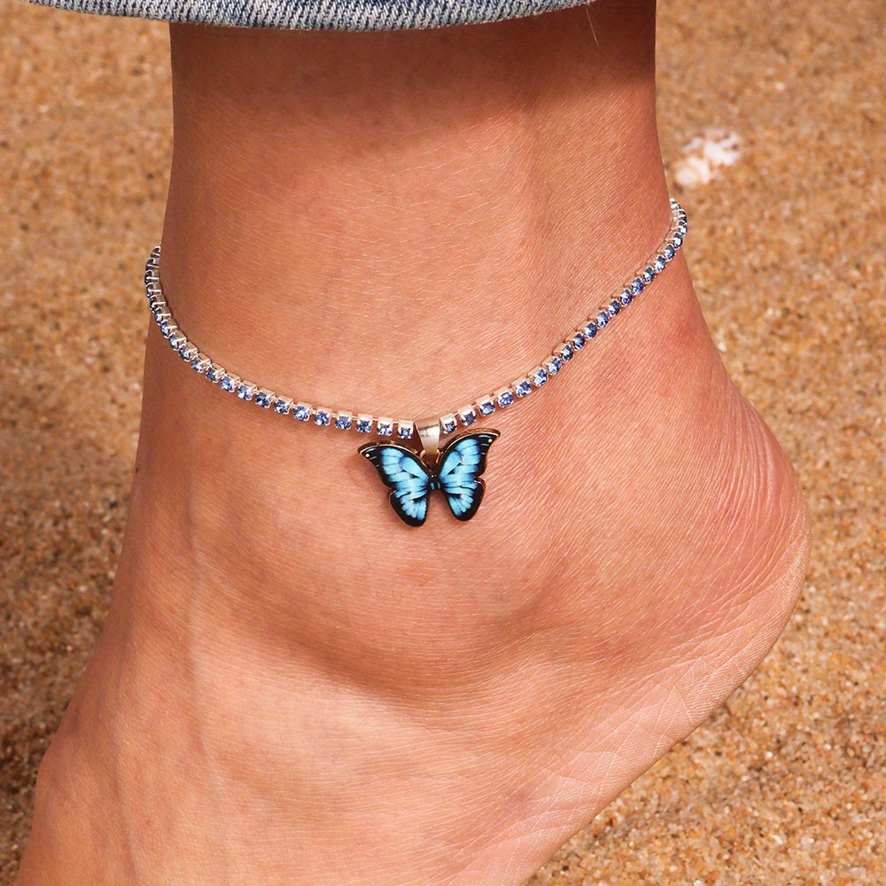 Add a touch of sparkle to your ankle with this beautiful butterfly shape pendant anklet. The colorful zircon stones make this anklet eye-catching and stylish.