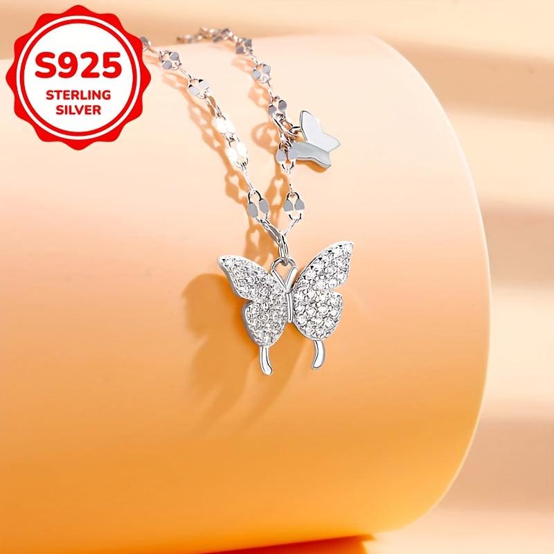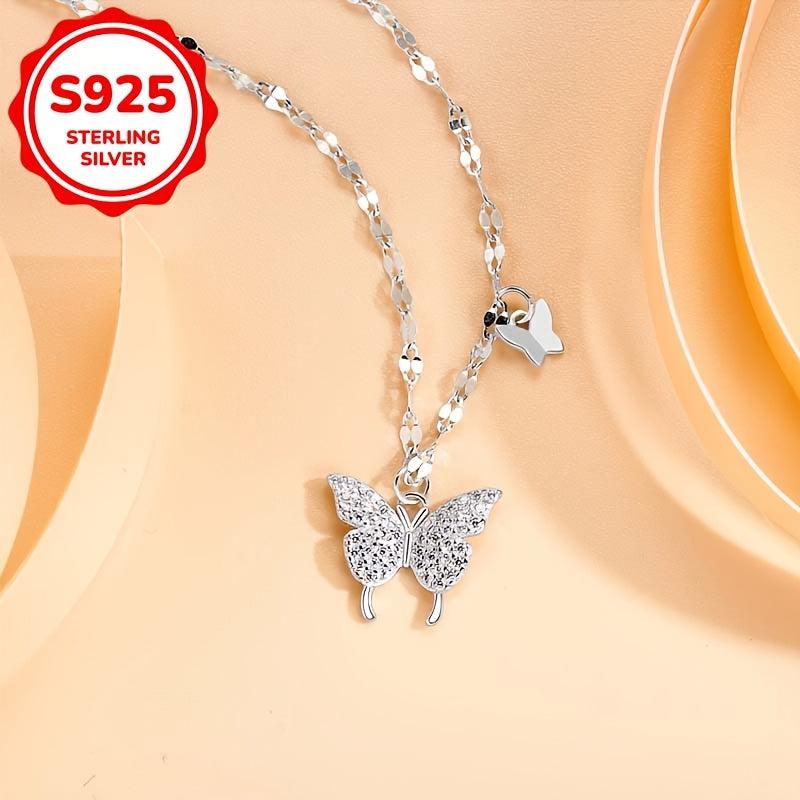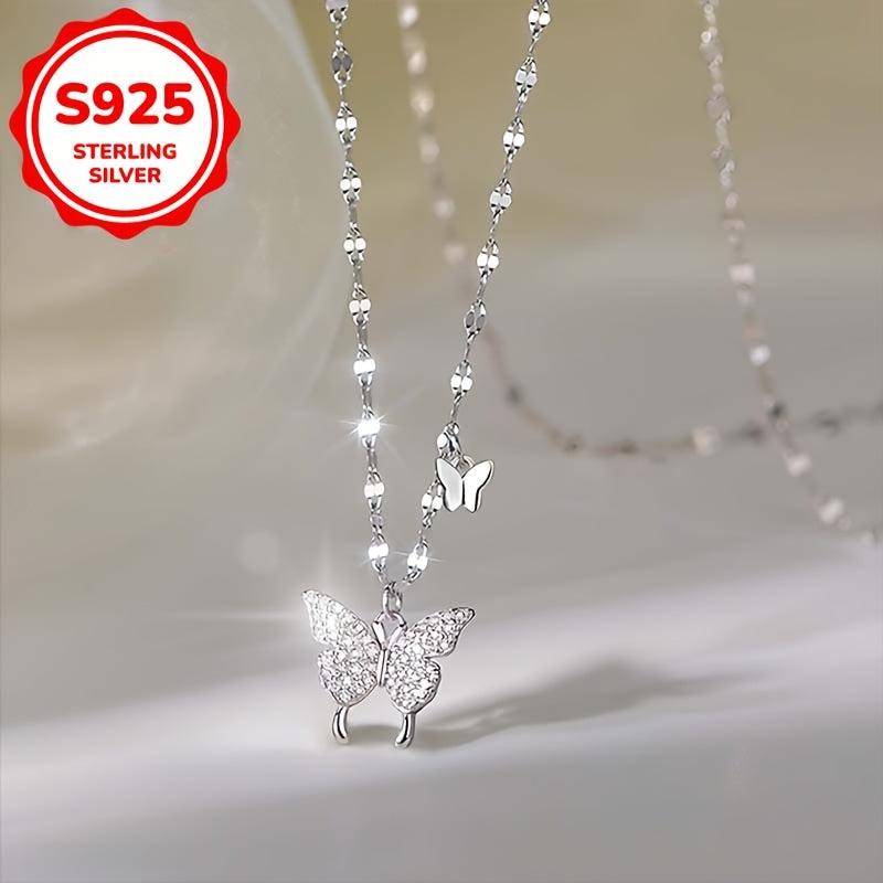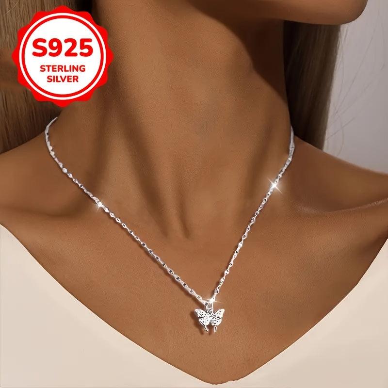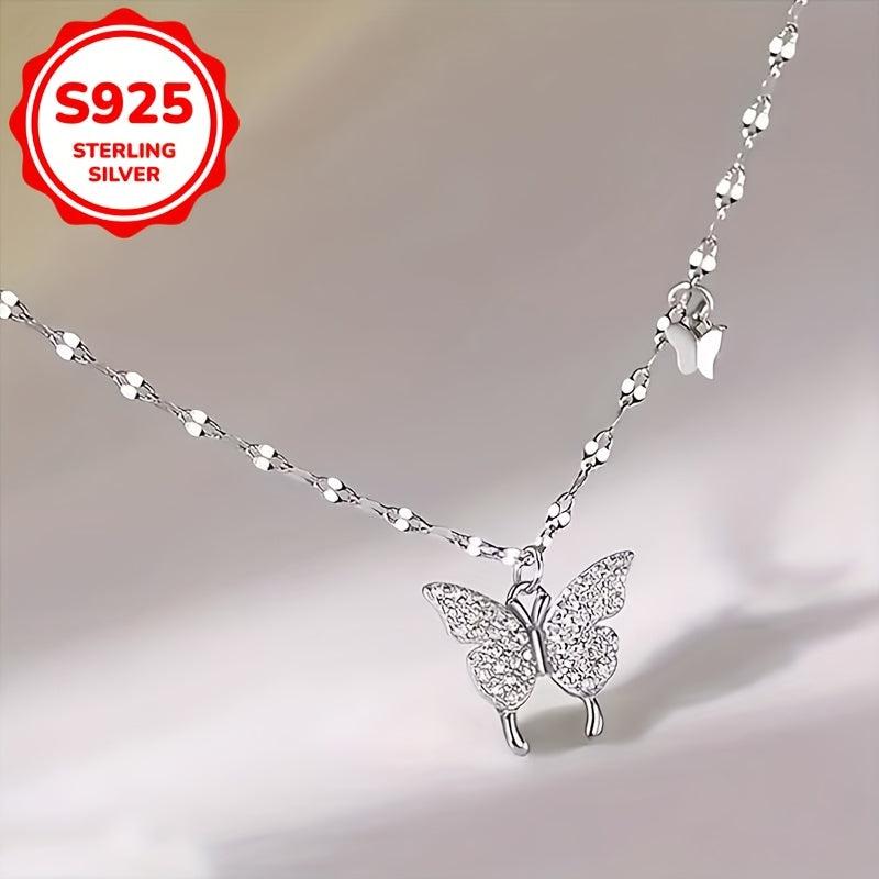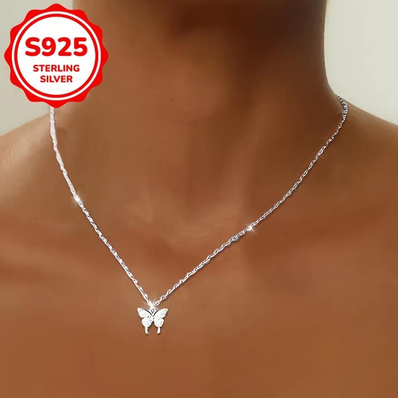 This stunning sterling silver necklace features a 3D butterfly pendant on a sparkling chain. It is perfect for daily wear or special occasions, adding a touch of elegance to any outfit.