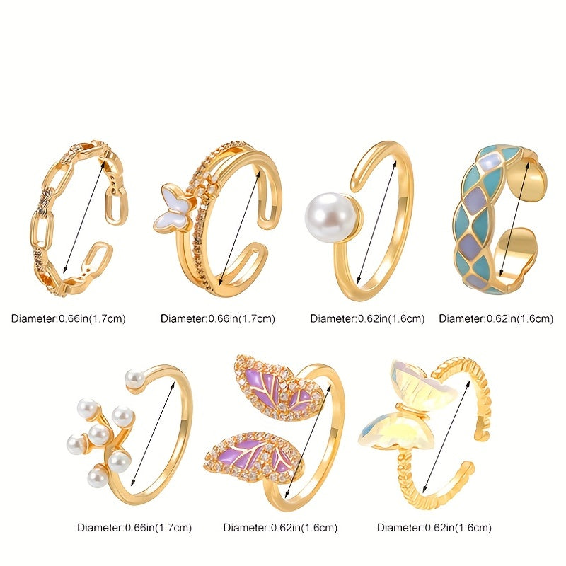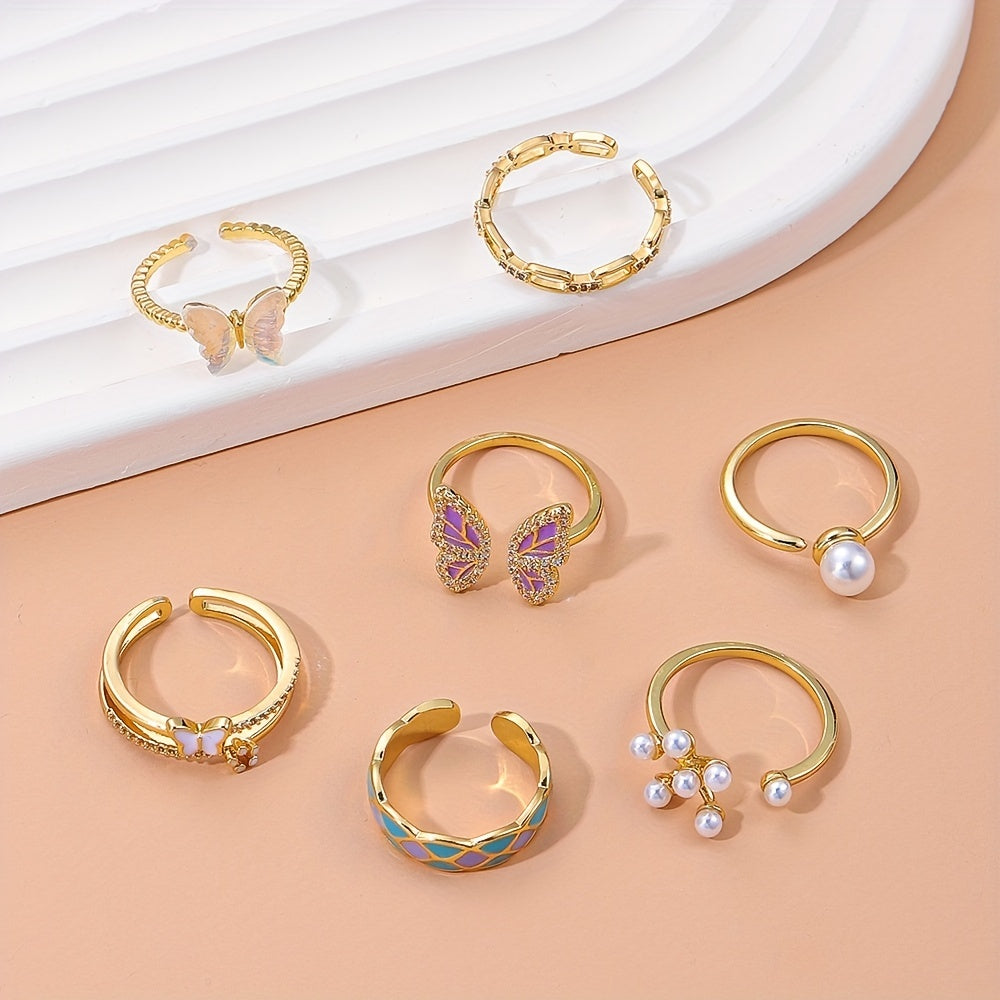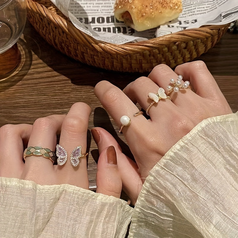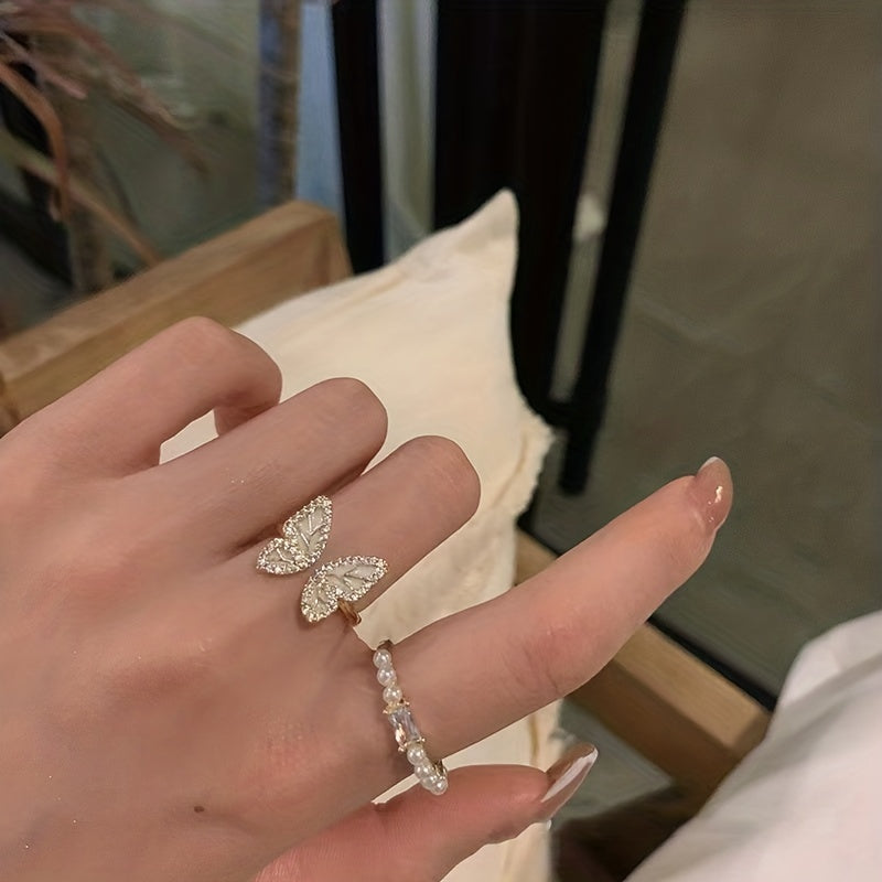 Add a touch of personality to your outfits with this beautiful butterfly ring featuring faux pearl inlay. Perfect for daily wear or special occasions.