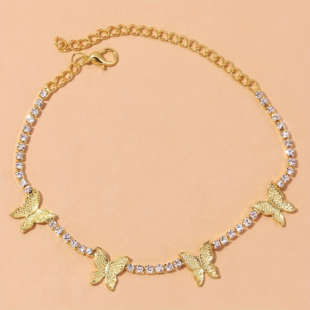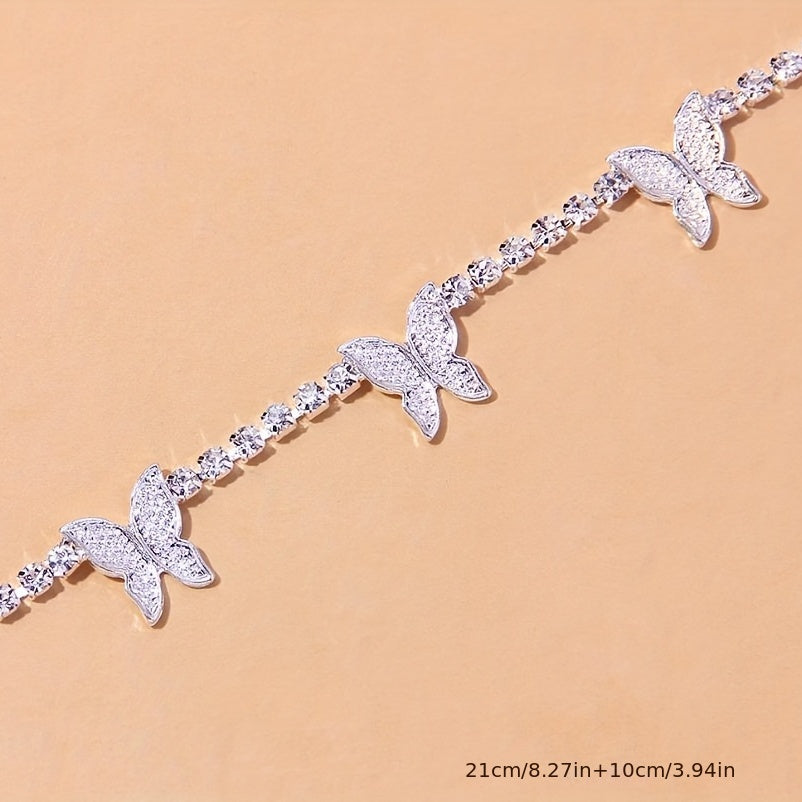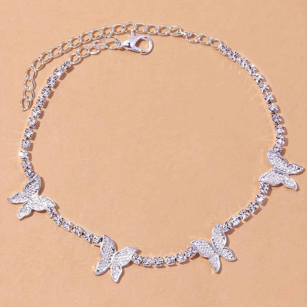 Add a touch of summer sparkle with this elegant butterfly shape chain anklet featuring inlaid rhinestones. Perfect for the beach or sandals!