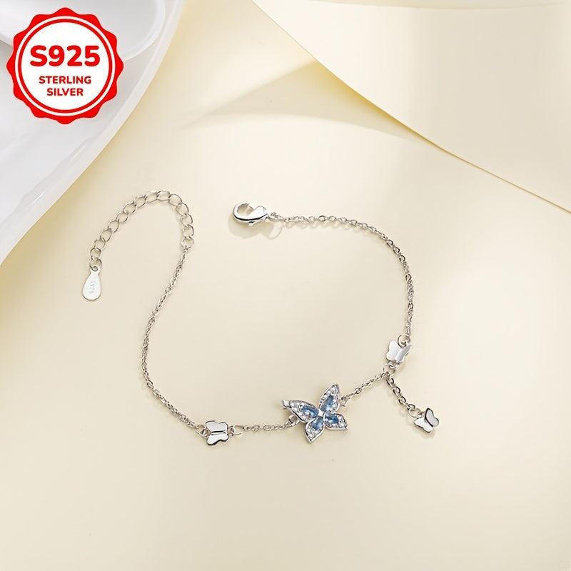 Elegant bracelet featuring a butterfly design with synthetic zirconia inlays. Made of 925 silver, weighing 3g. Perfect for daily wear or as a thoughtful gift.