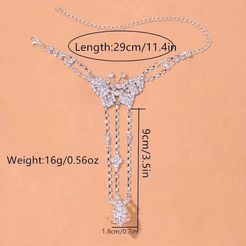 Elegant butterfly toe ring anklet adorned with sparkling rhinestones, perfect for summer beach wear or weddings.