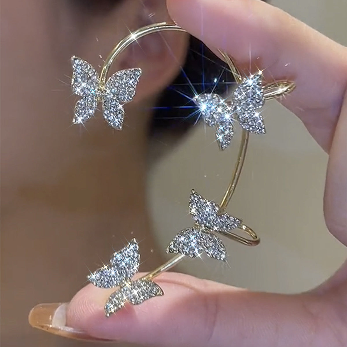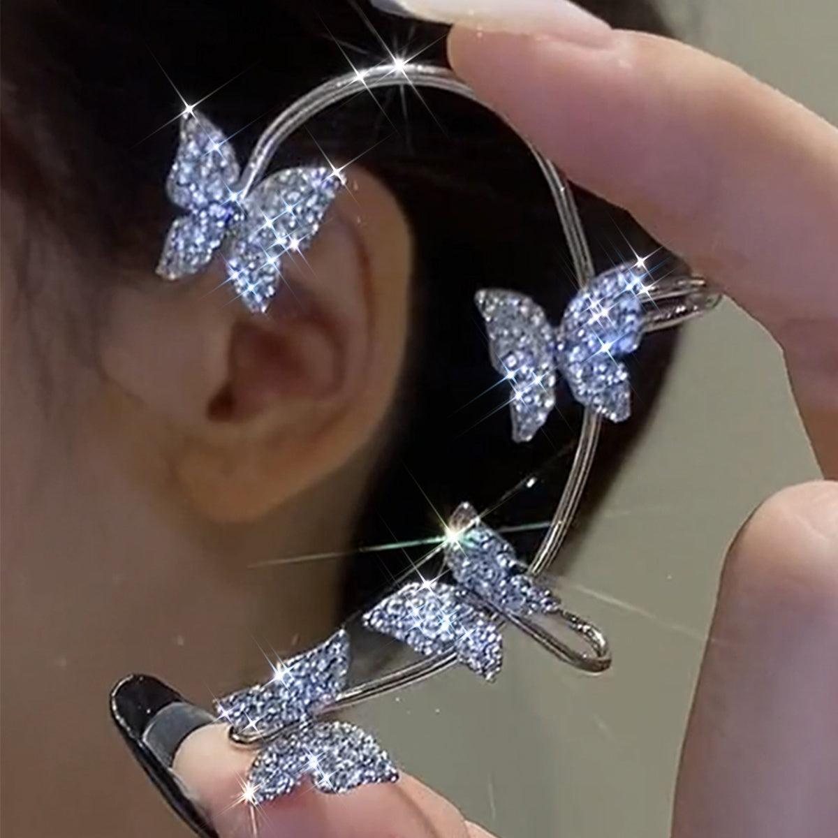 Beautiful butterfly zircon cuff earrings that don't require piercings, perfect for women and girls as a gift.