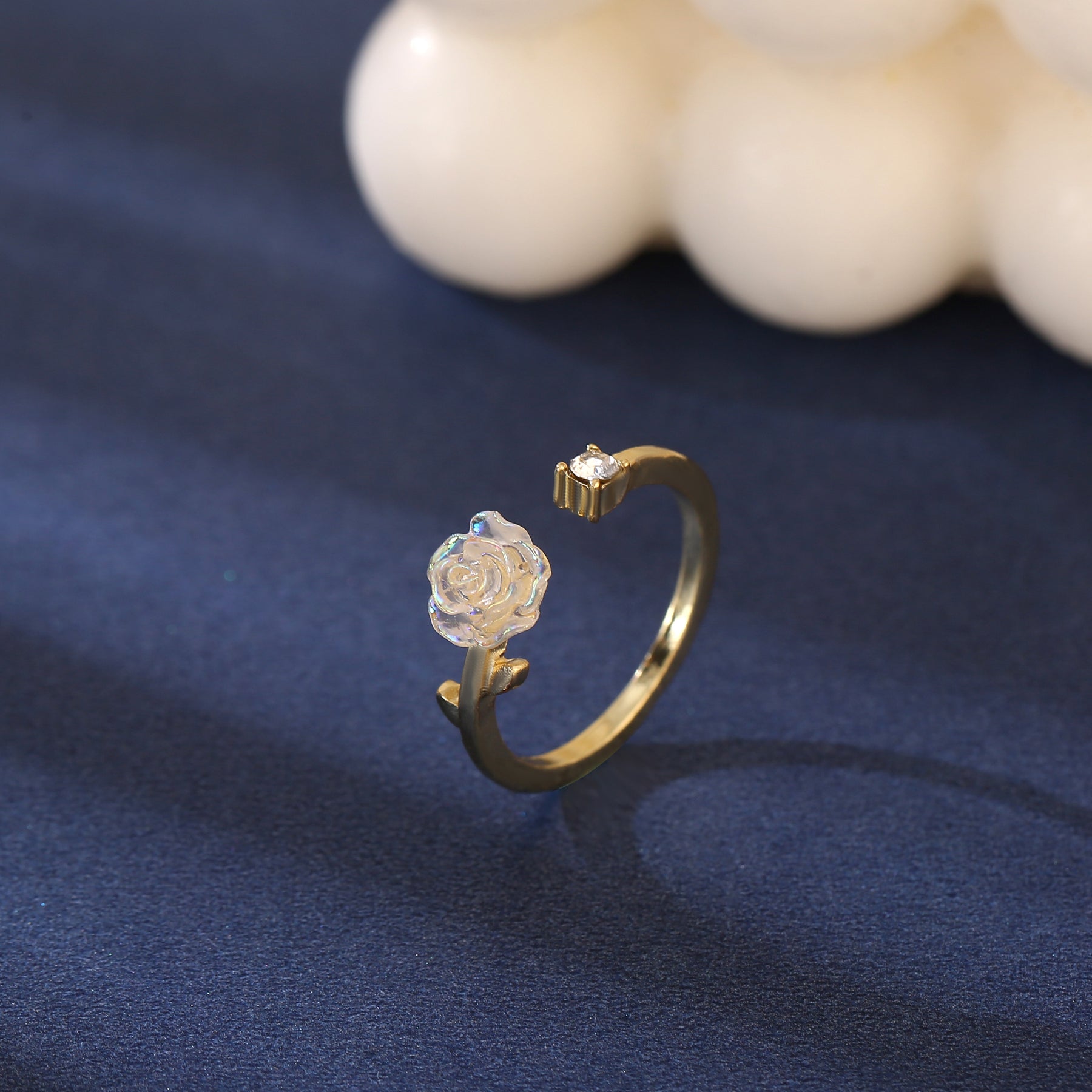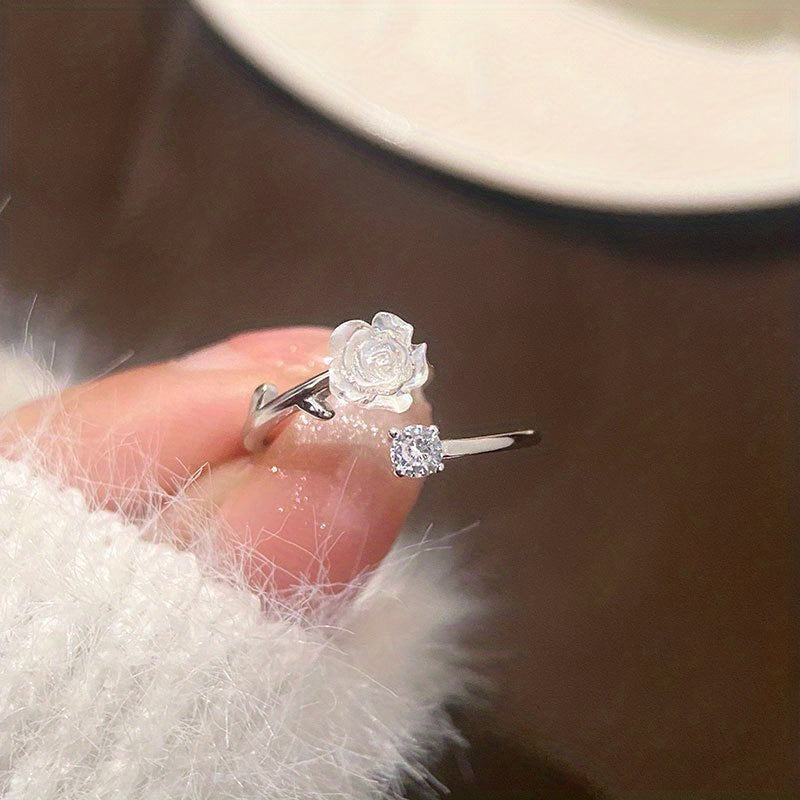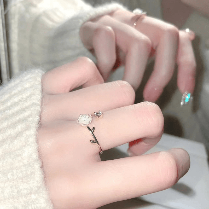 Add a touch of elegance with this beautiful Camellia Flower Open Ring. A perfect accessory for any outfit or occasion.