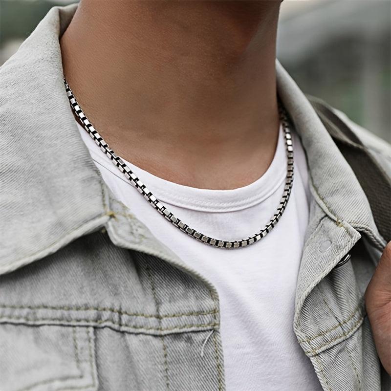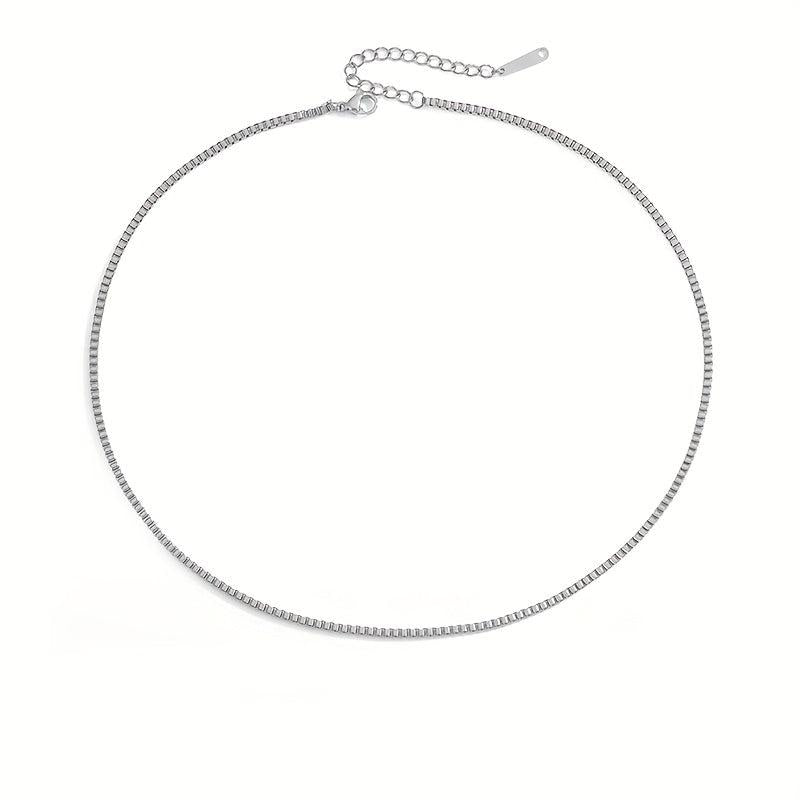 Elevate your casual attire with this minimalist stainless steel necklace featuring a retro modern design. This durable piece is perfect for year-round wear and makes a great gift.