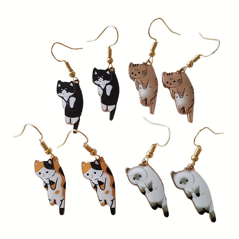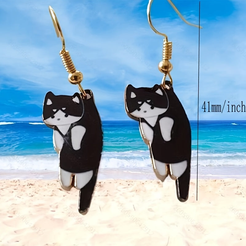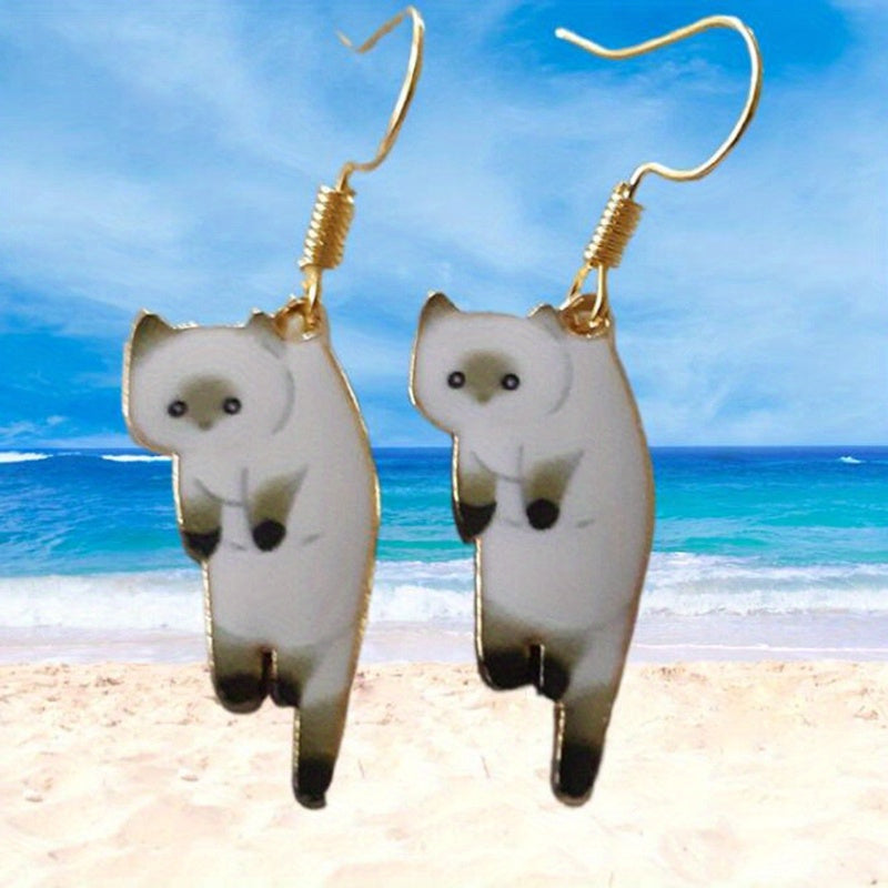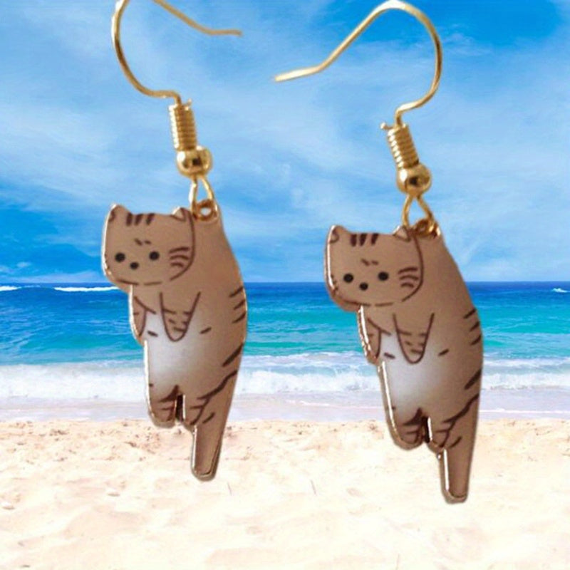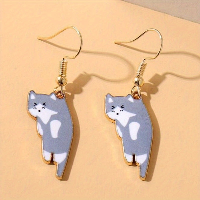 Adorn your ears with these charming Cartoon Cat Dangle Earrings, perfect for daily wear. Made of zinc alloy with a 14K gold plating, these earrings boast a retro boho style that will add a playful touch to any outfit.