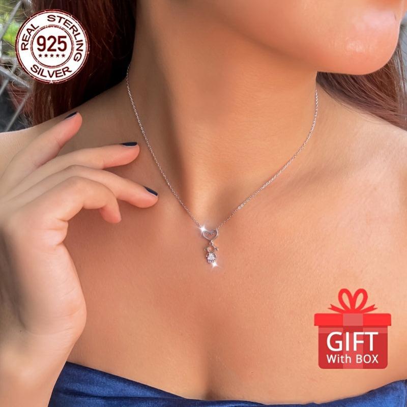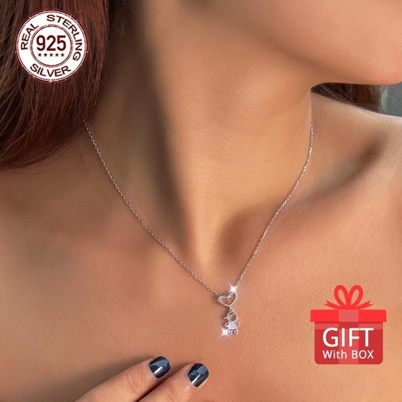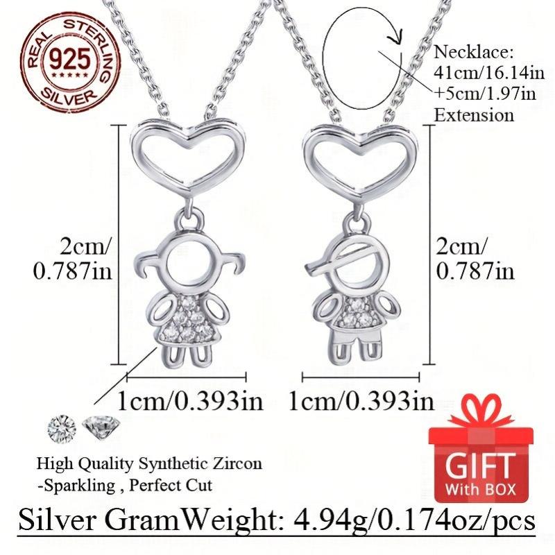 This adorable couple necklace is made of high-quality 925 sterling silver with synthetic zirconia. It is a perfect Valentine's gift for women and men on birthdays.
