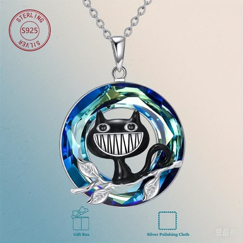 This beautiful cat necklace is made of 925 sterling silver featuring synthetic crystal, perfect for cat lovers. It makes a great gift for women, moms, or anyone who adores cats.