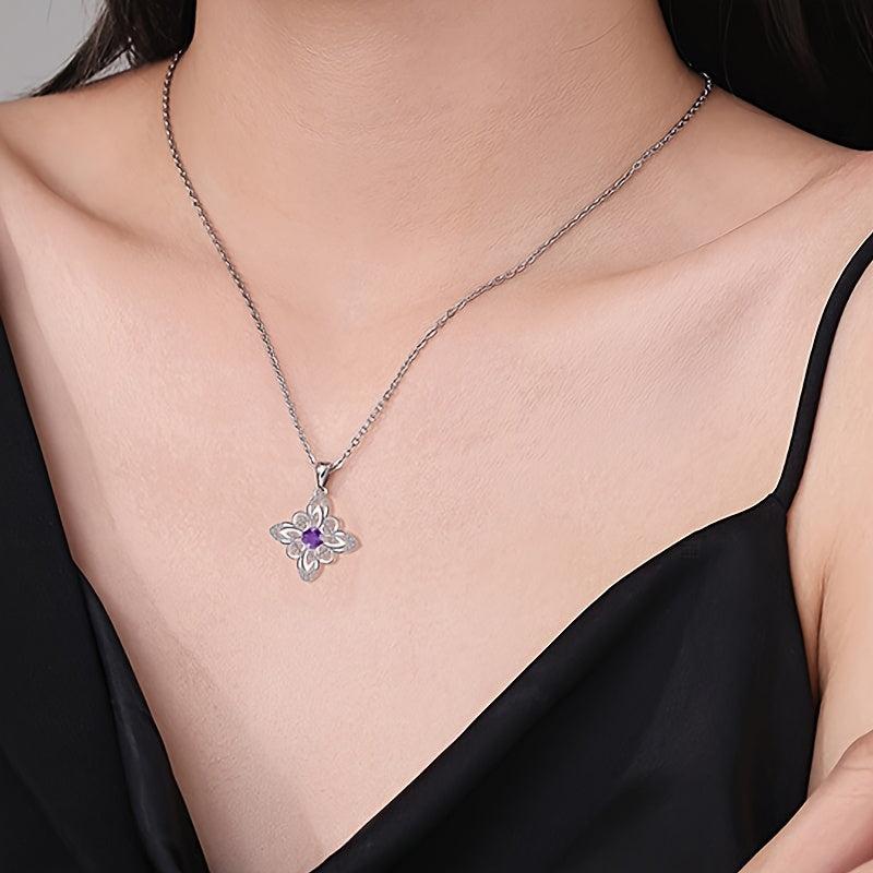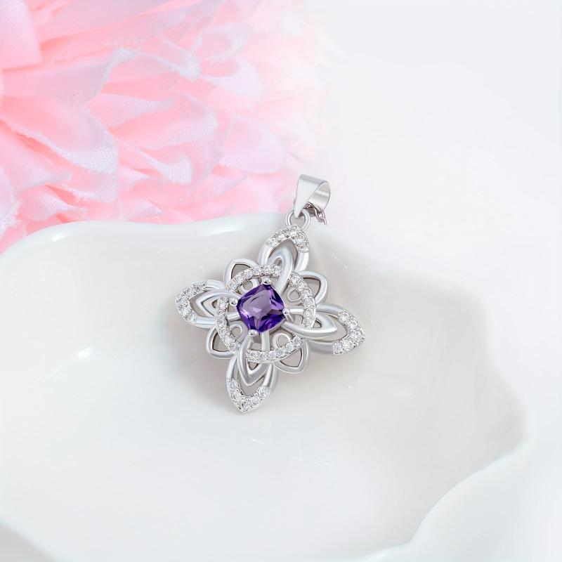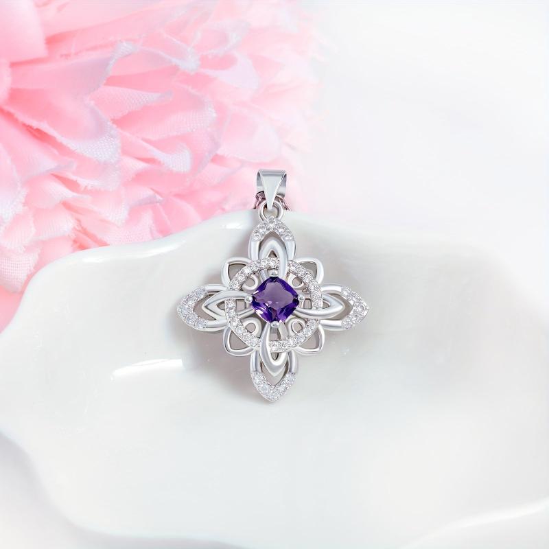 This Witch Knot necklace features a silvery purple cubic zirconia pendant, making it a perfect gift for your wife, girlfriend, or daughter for Halloween.