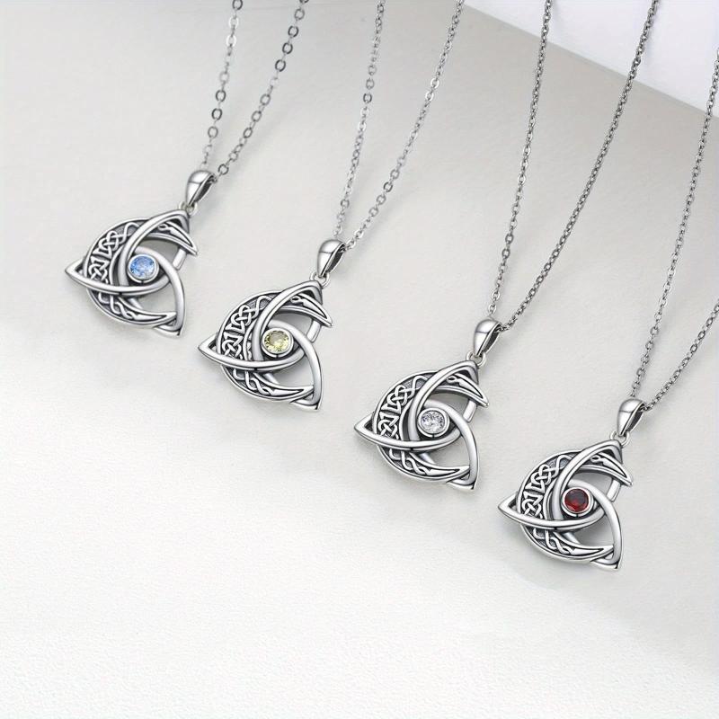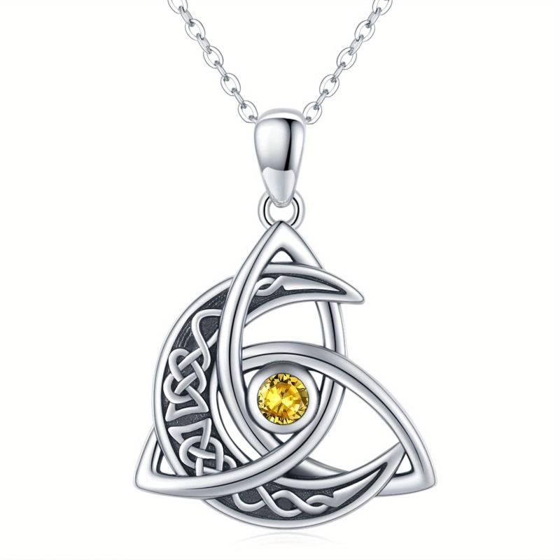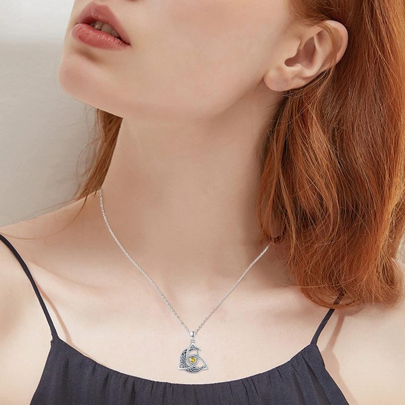 This elegant necklace features a Celtic knot design on a crescent moon pendant, adorned with a November birthstone. Perfect gift for women and girls.