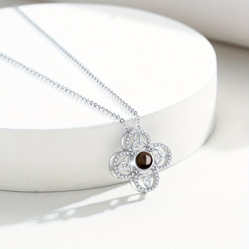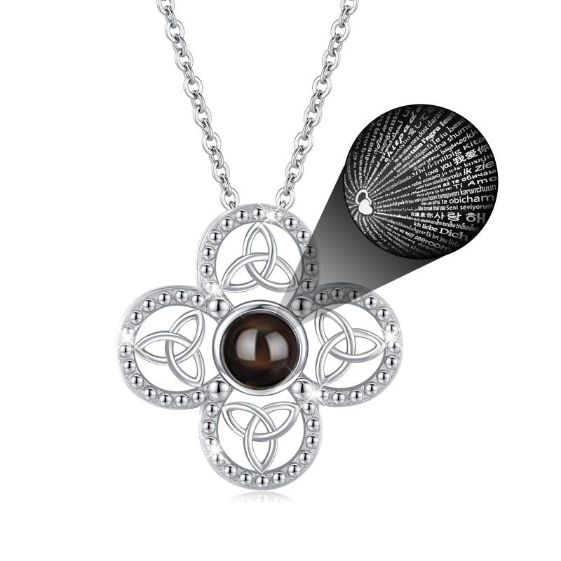 Express your love with this Celtic 925 sterling silver necklace featuring a unique 100 languages projection design.