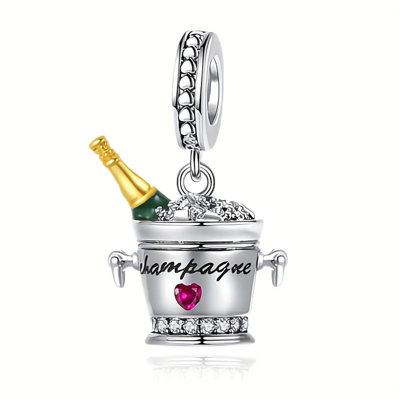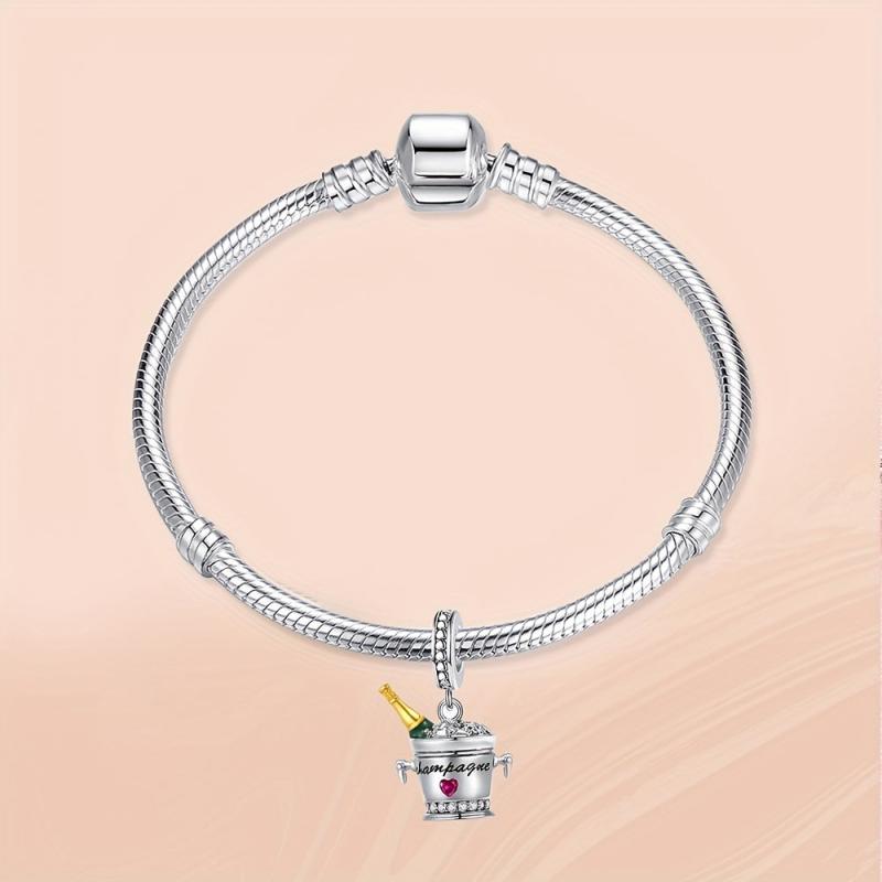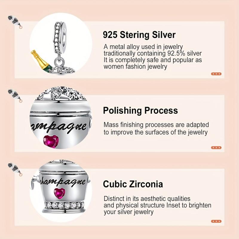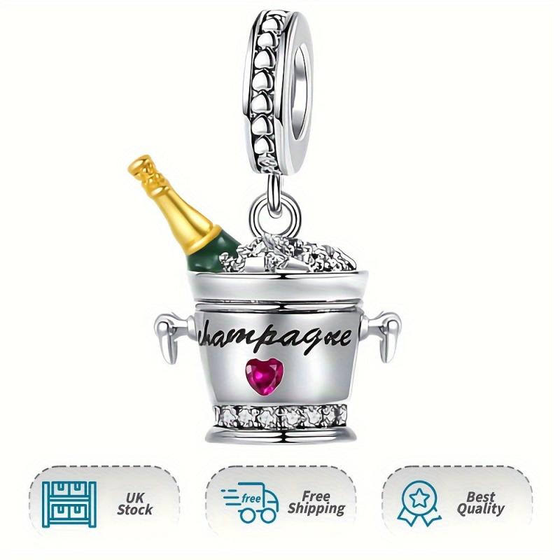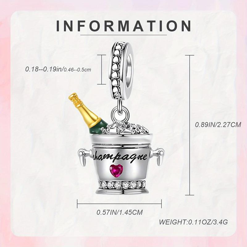 Add a touch of elegance with this Women Iced Champagne Dangle Charm. Made of 925 sterling silver, perfect for holiday DIY jewelry.