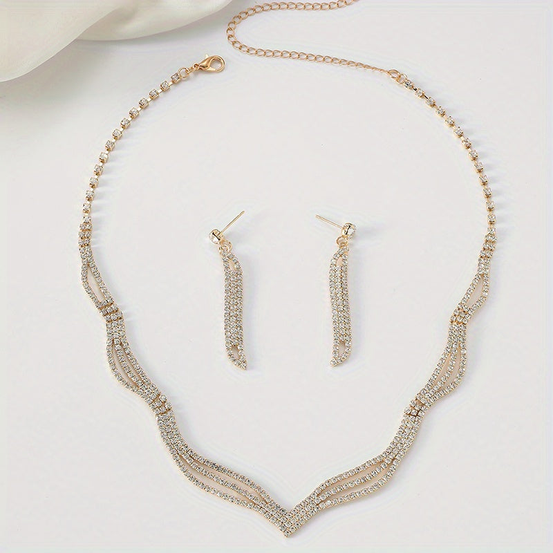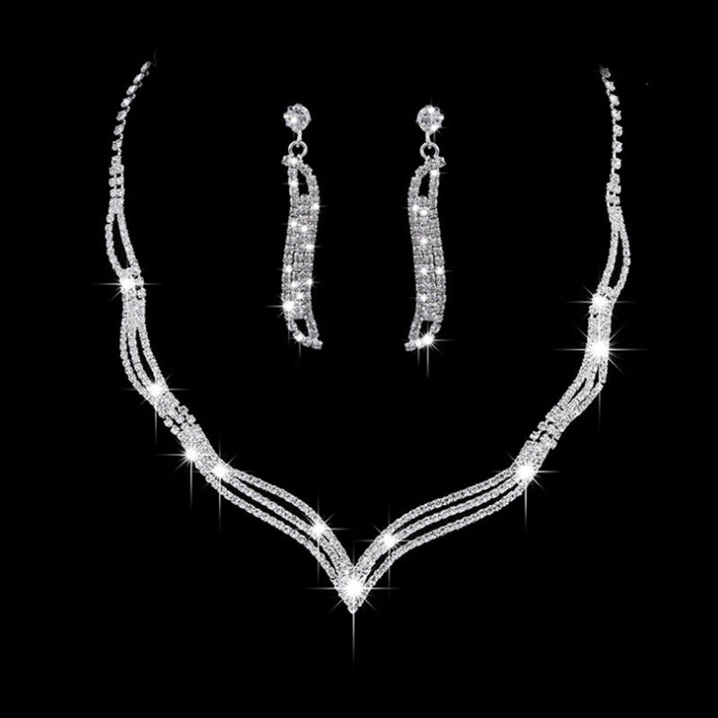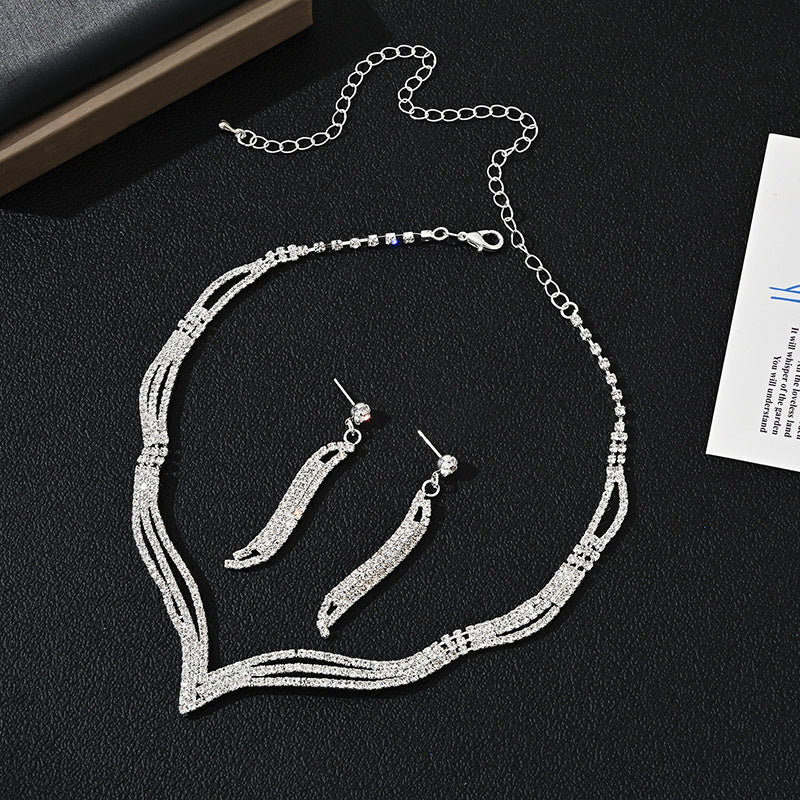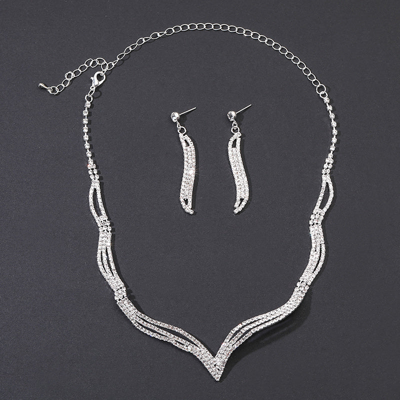 Complete your bridesmaid look with this elegant jewelry set featuring a necklace and stud earrings adorned with rhinestones.