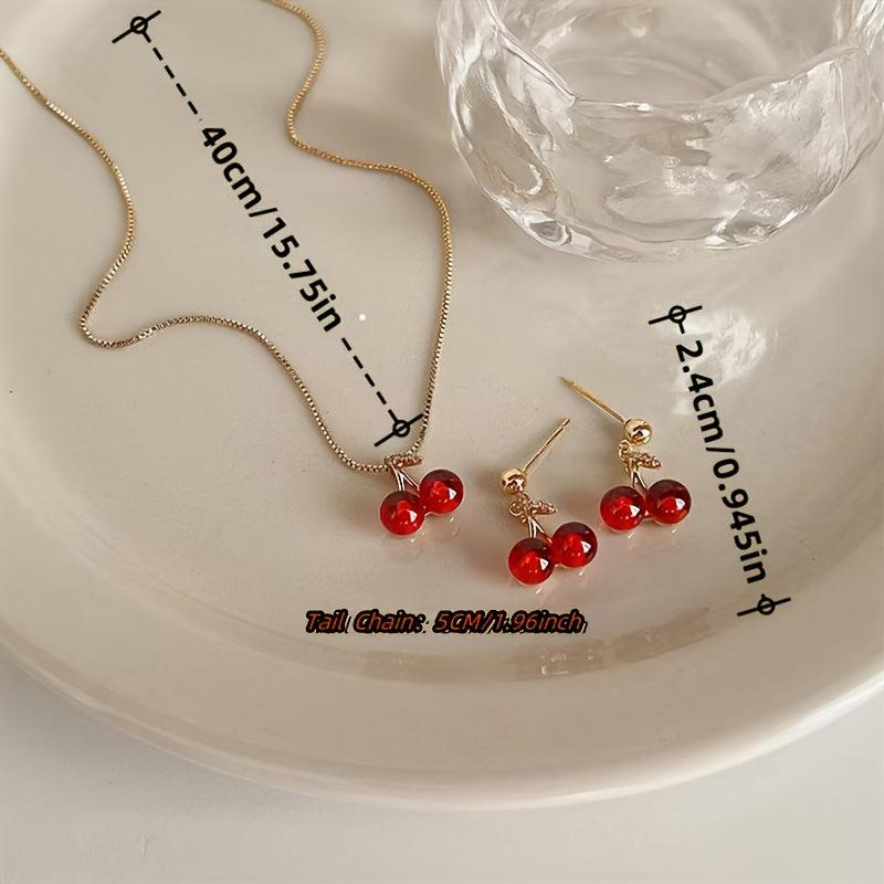 Complete your casual look with this 3-piece jewelry set featuring a cherry pendant necklace and matching earrings. Made from stainless steel, this set is durable and non-fading.