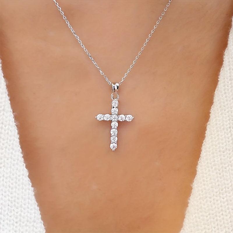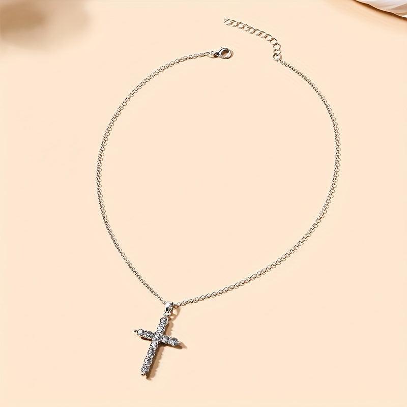 Elegant and minimalist rhinestone cross necklace that adds a touch of style to any outfit.