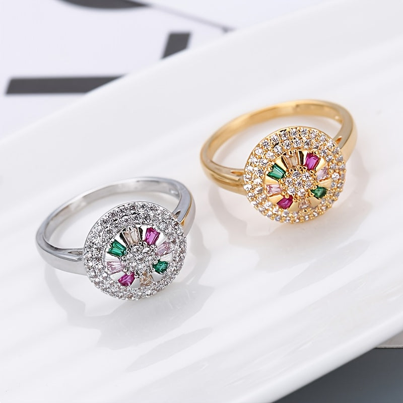 Add a festive touch to your look with this colorful zircon ring. Perfect for the holiday season and beyond.