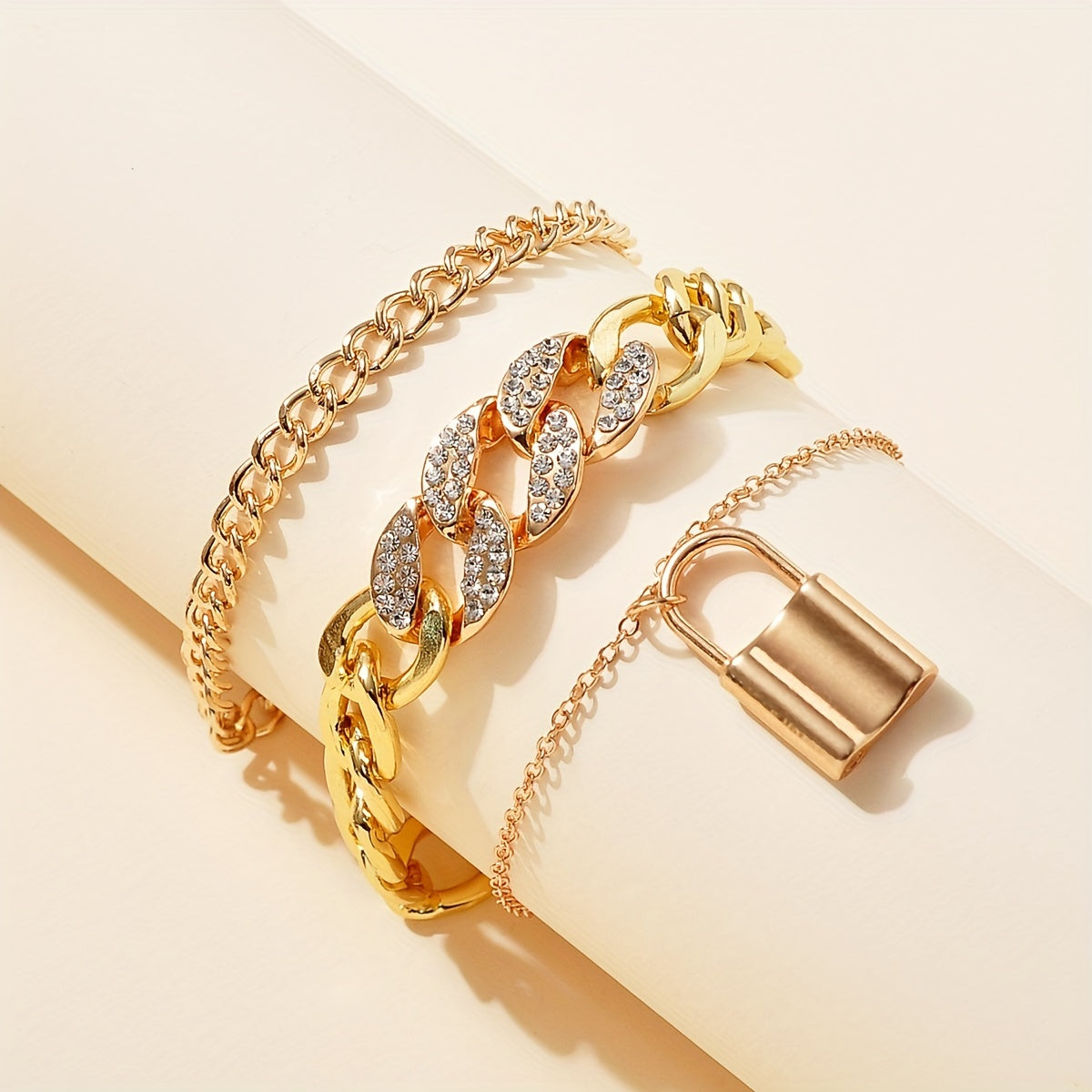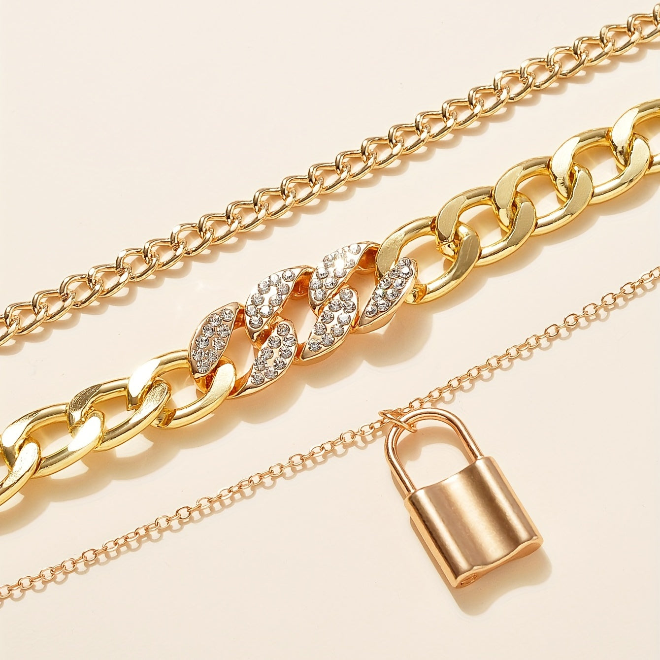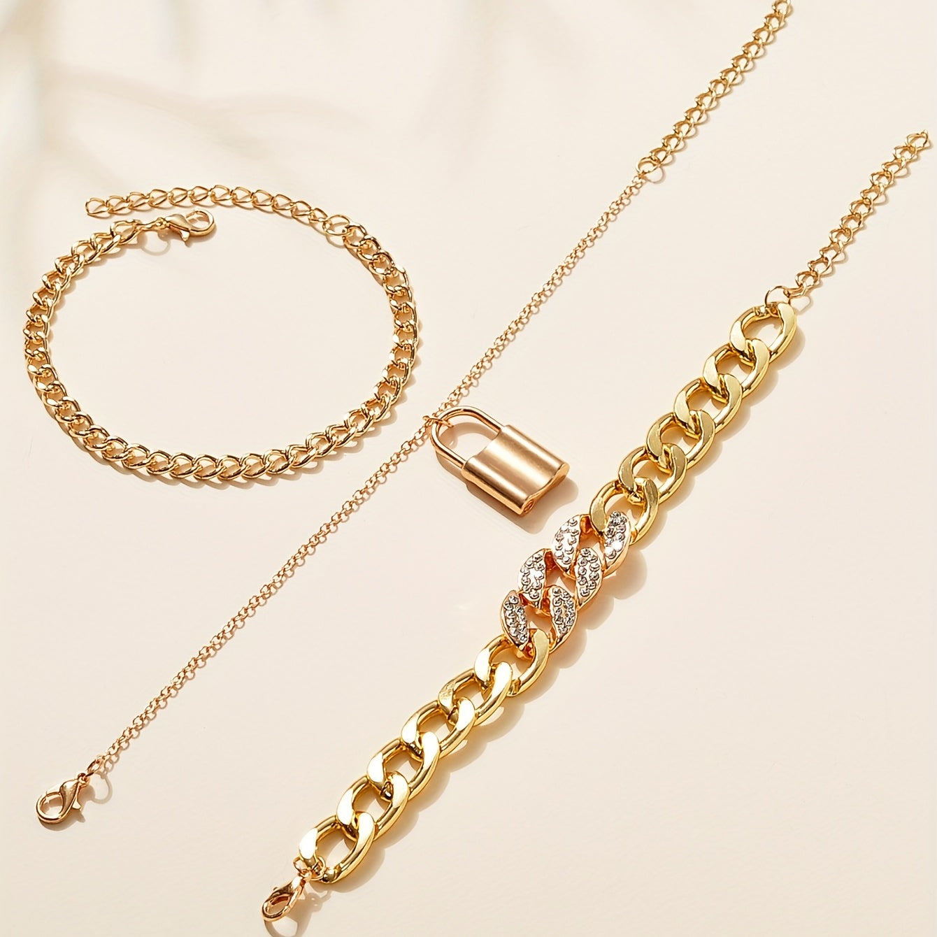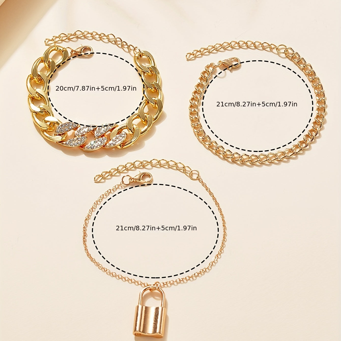 Elevate your style with this trendy ankle bracelet set featuring a lock pendant. The three-layer design adds a touch of glamour to your feet.