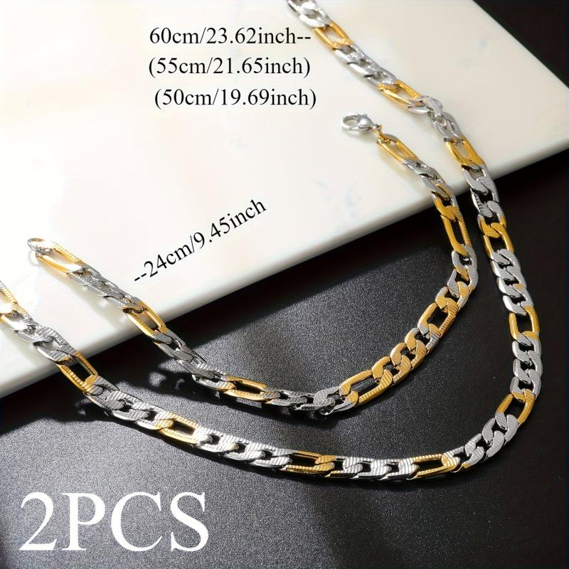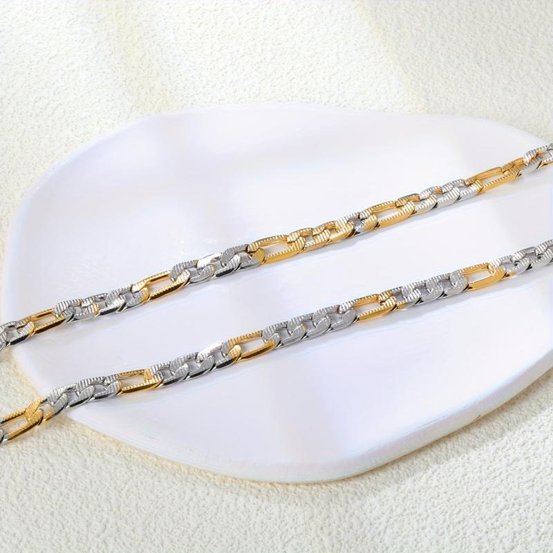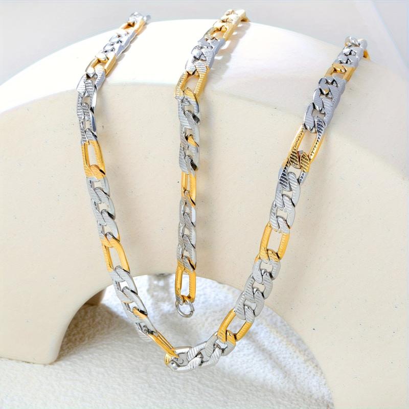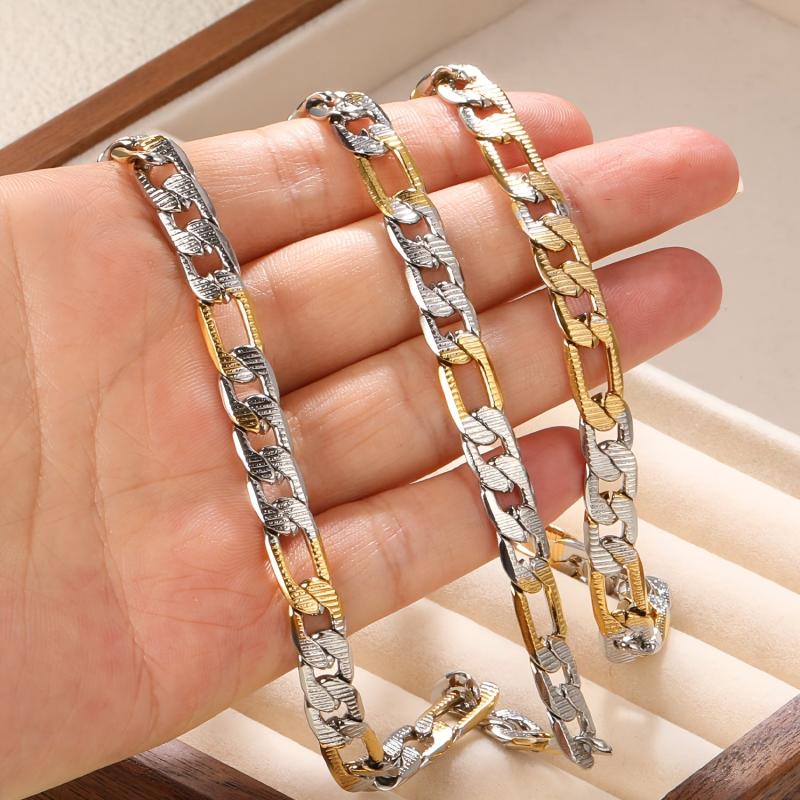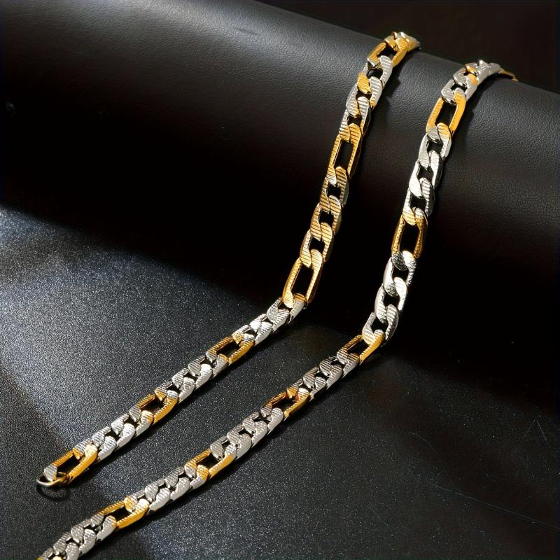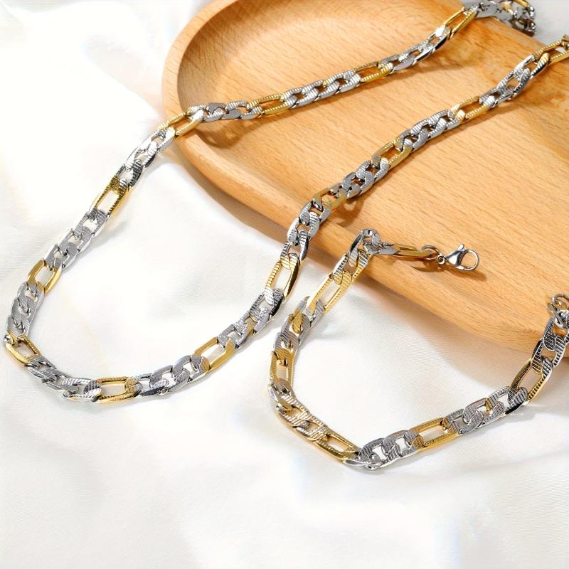 Titanium steel chunky chain bracelet and necklace in golden and silver tones, perfect for parties and music festivals. Versatile punk-inspired accessory.