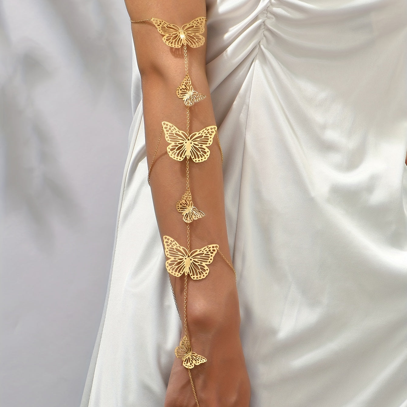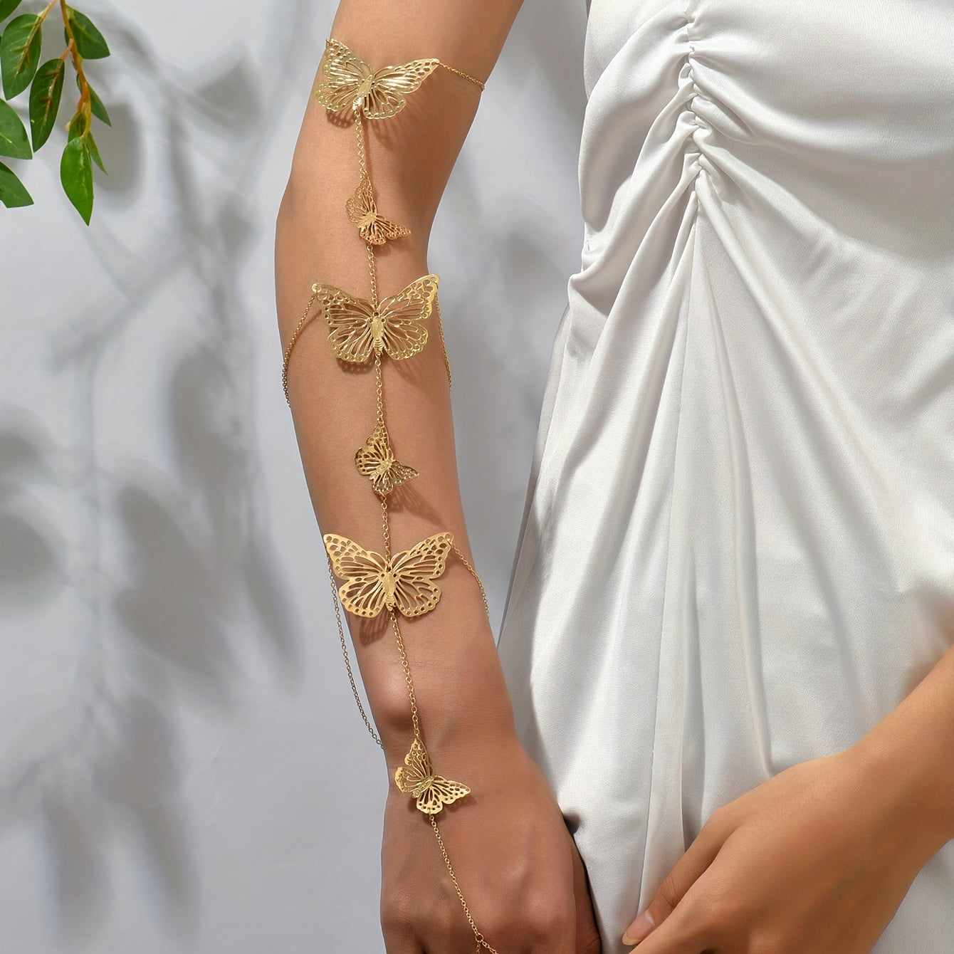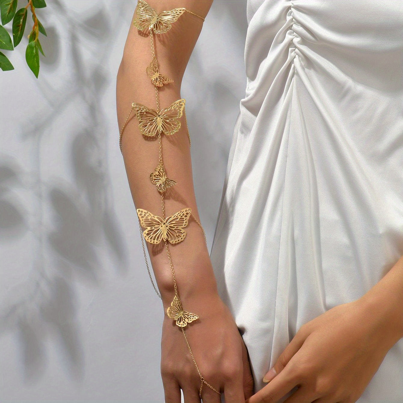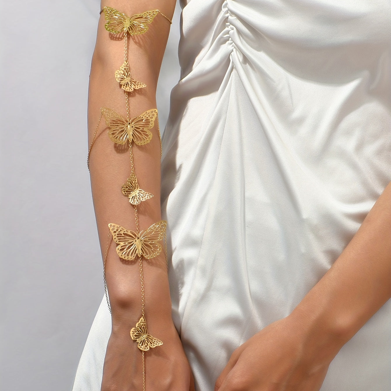 Elevate your style with this stunning Classic Butterfly Arm Chain. Made with 14K plated alloy, this body chain adds a touch of elegance to any outfit.