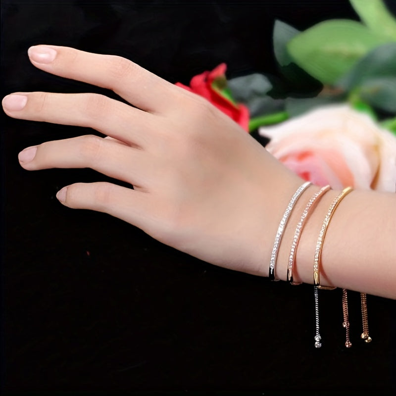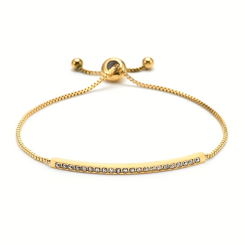 Add a touch of elegance to your outfit with this classic cubic zirconia tennis bracelet. Made with high-quality materials and 18K gold plating, this bracelet is perfect for everyday wear or special occasions.