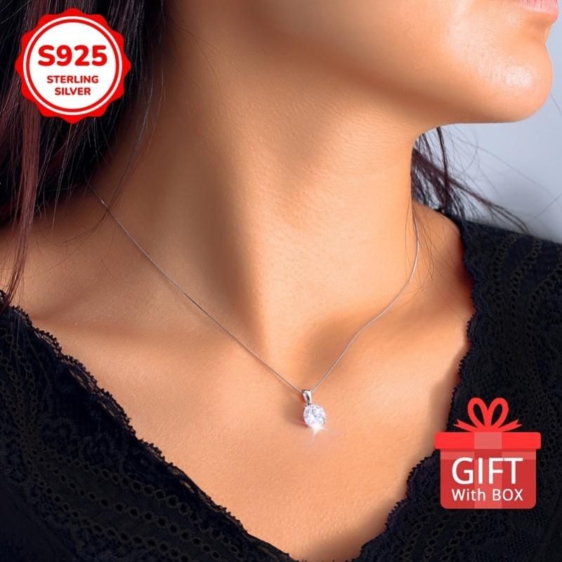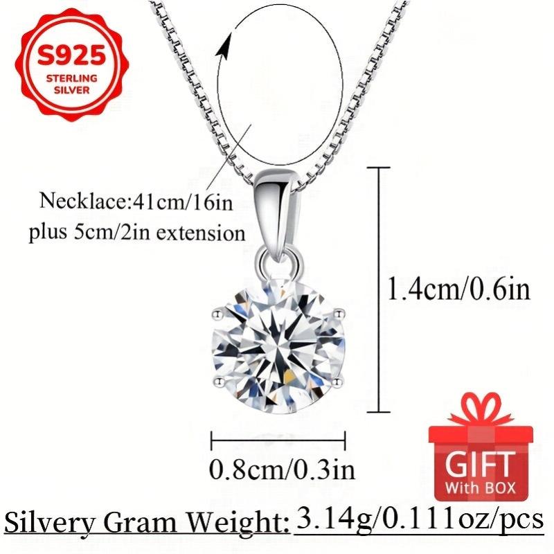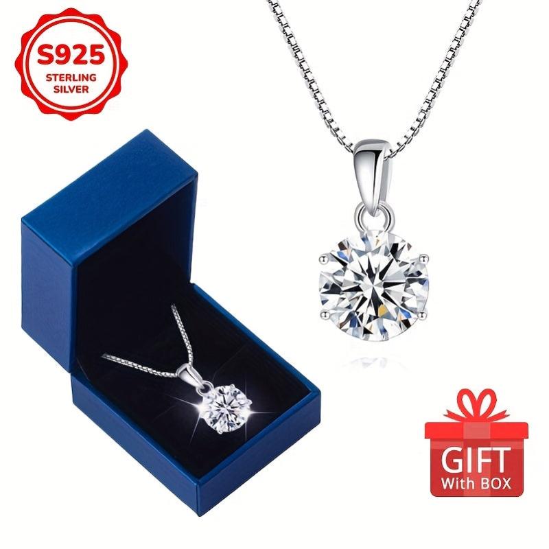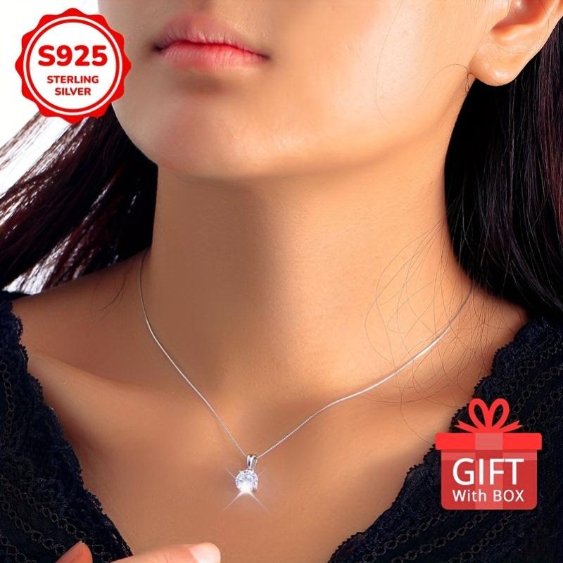 Elegant 1pc S925 pure silver pendant necklace with synthetic zirconia inlay. Perfect gift for your loved one.
