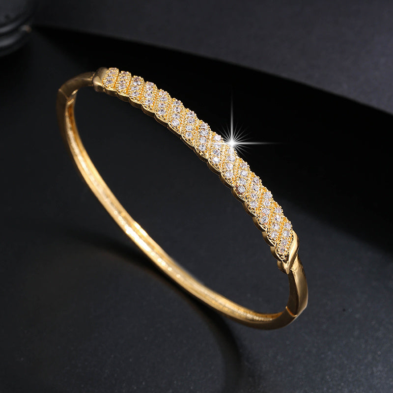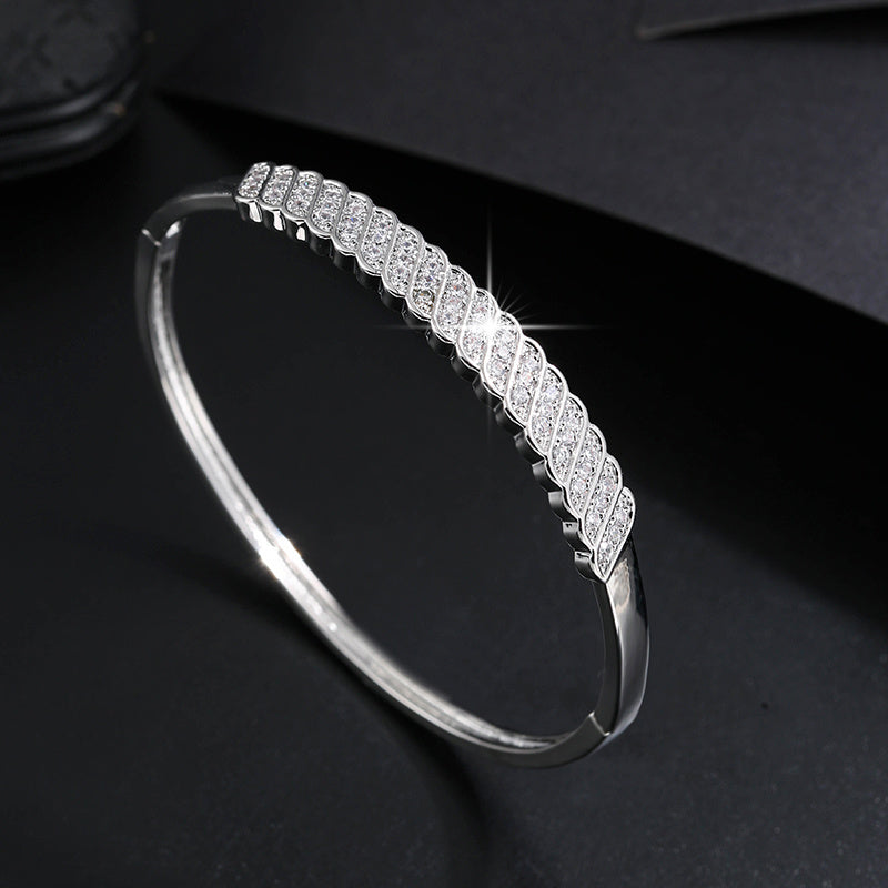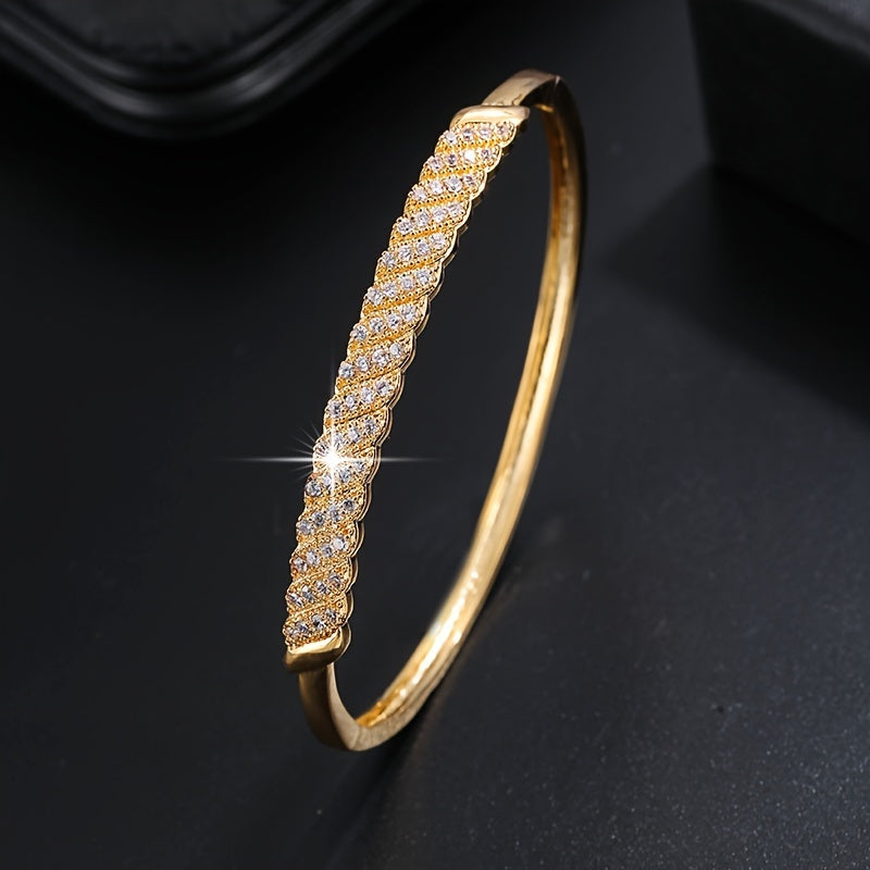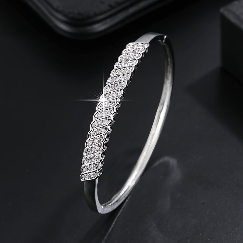This stylish bangle bracelet is adorned with zircon stones, making it perfect for daily clothing outfits.