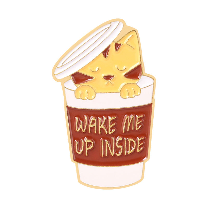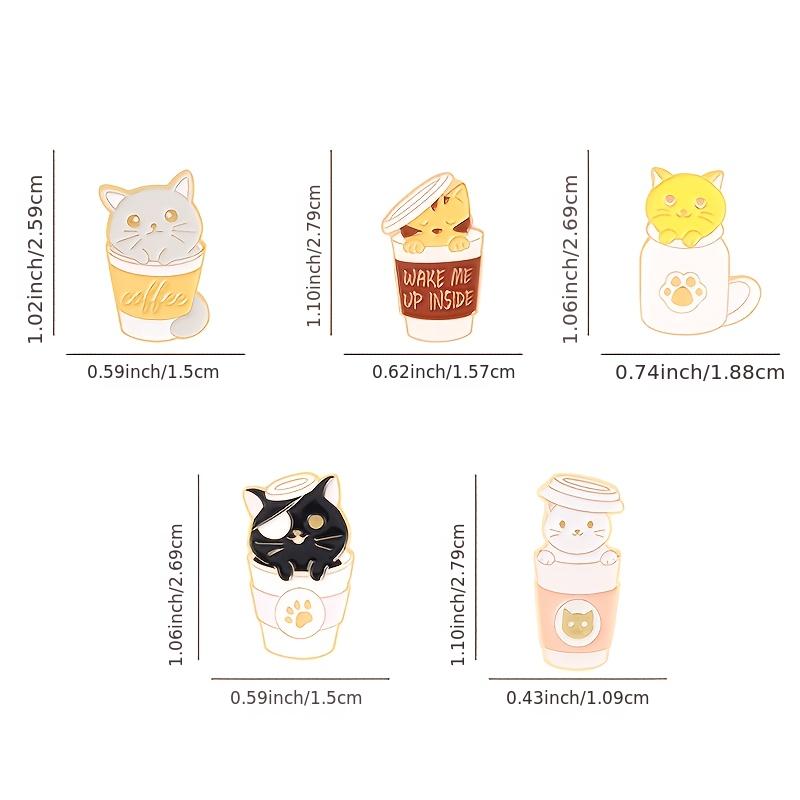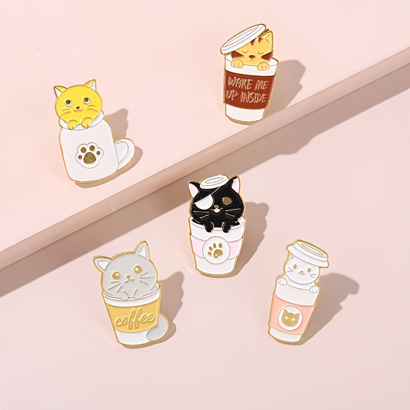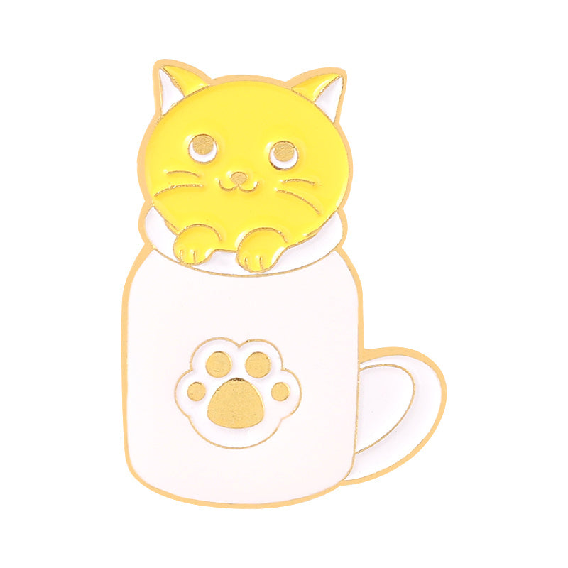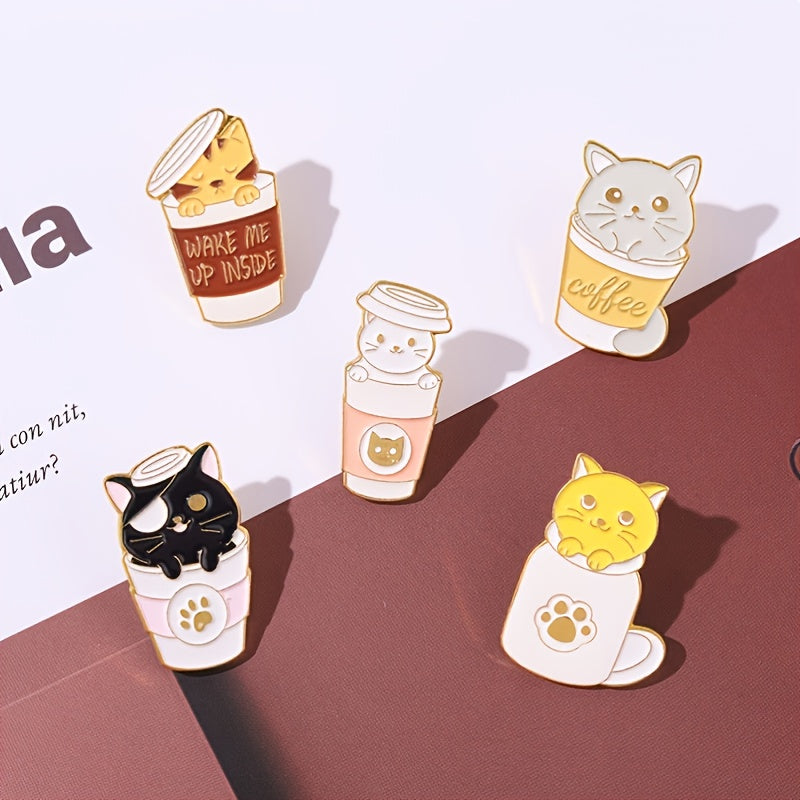 This cute enamel pin features a cat with a coffee cup and paw design, perfect for cat lovers. It can be worn on bags, clothes, or hats. Makes a great gift for any cat enthusiast.