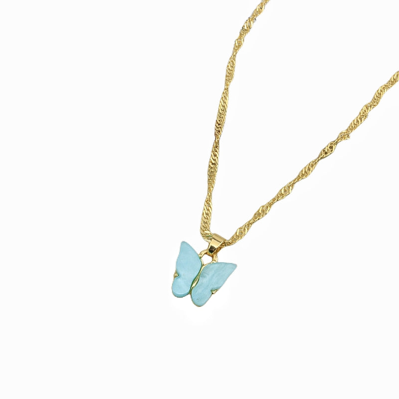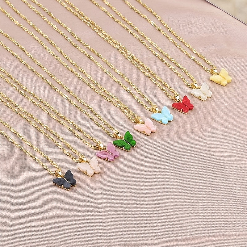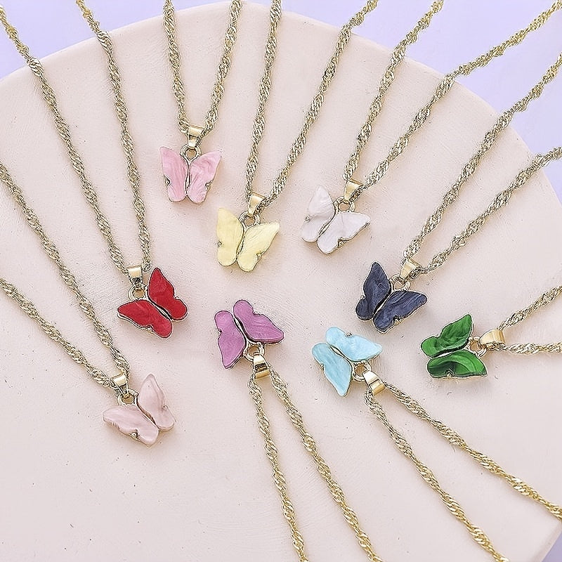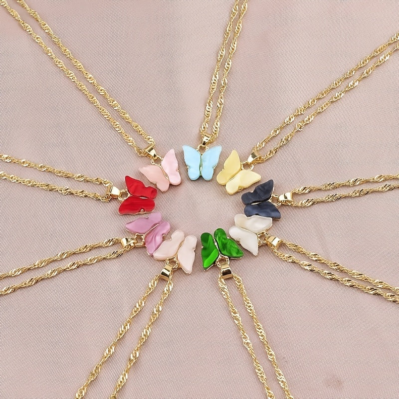 This stunning necklace set features colorful acrylic butterfly design, perfect for parties and Christmas celebrations.