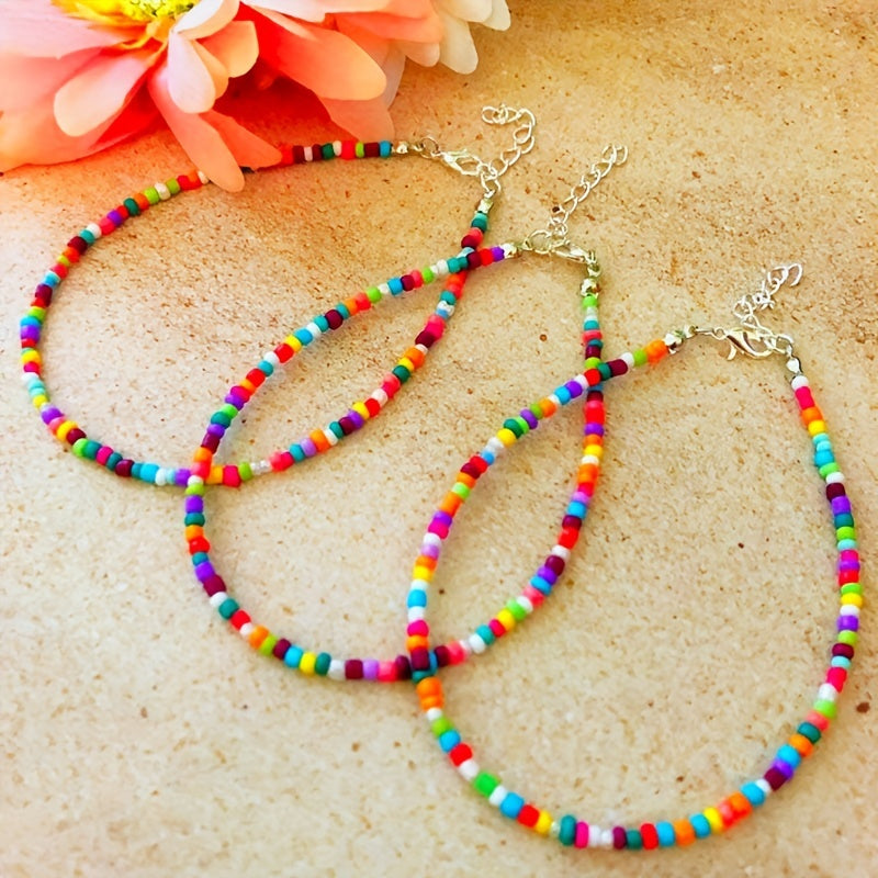 Add a touch of vibrant style to your beach look with this colorful beaded anklet. Perfect for women and girls, this jewelry piece is a fun accessory for the summer season.