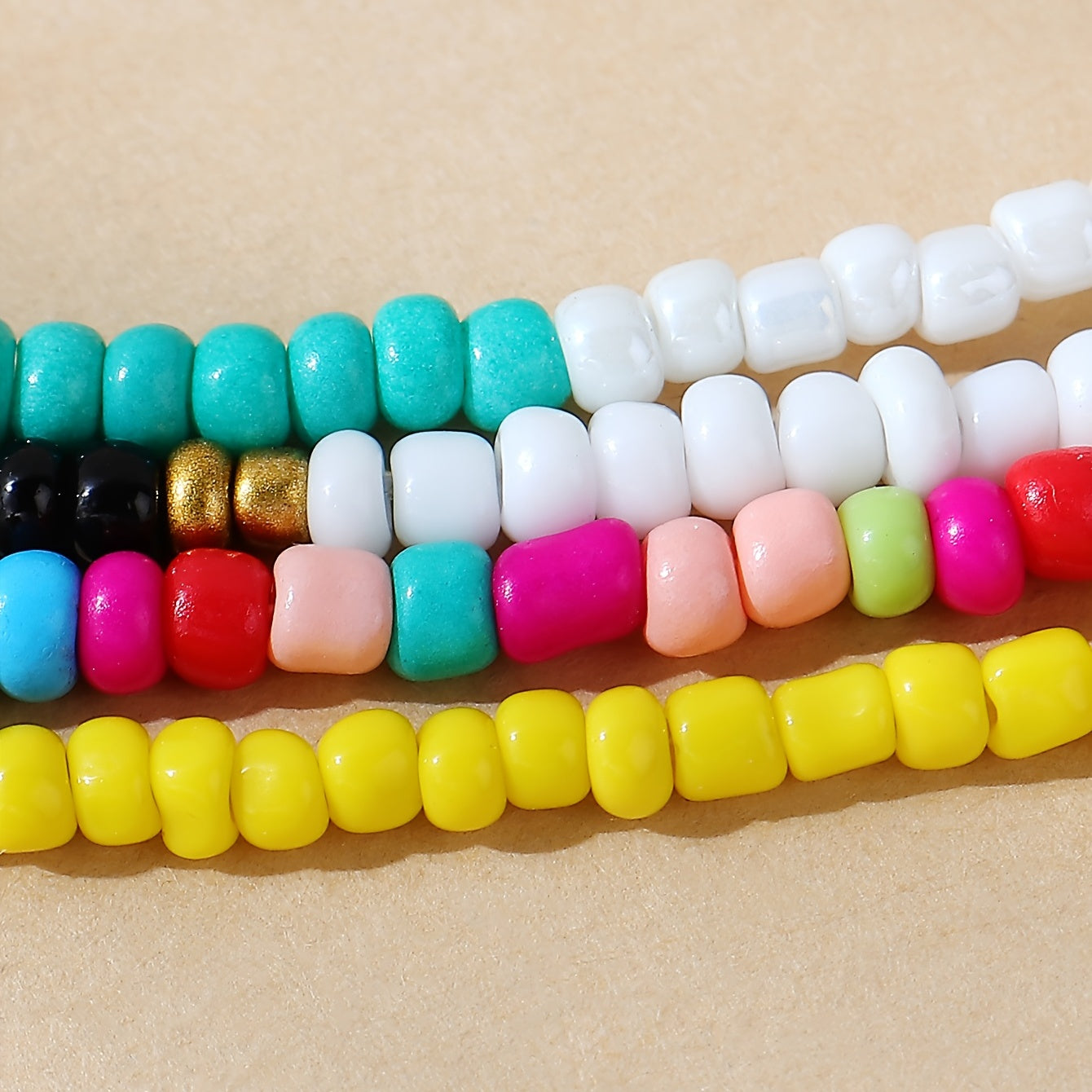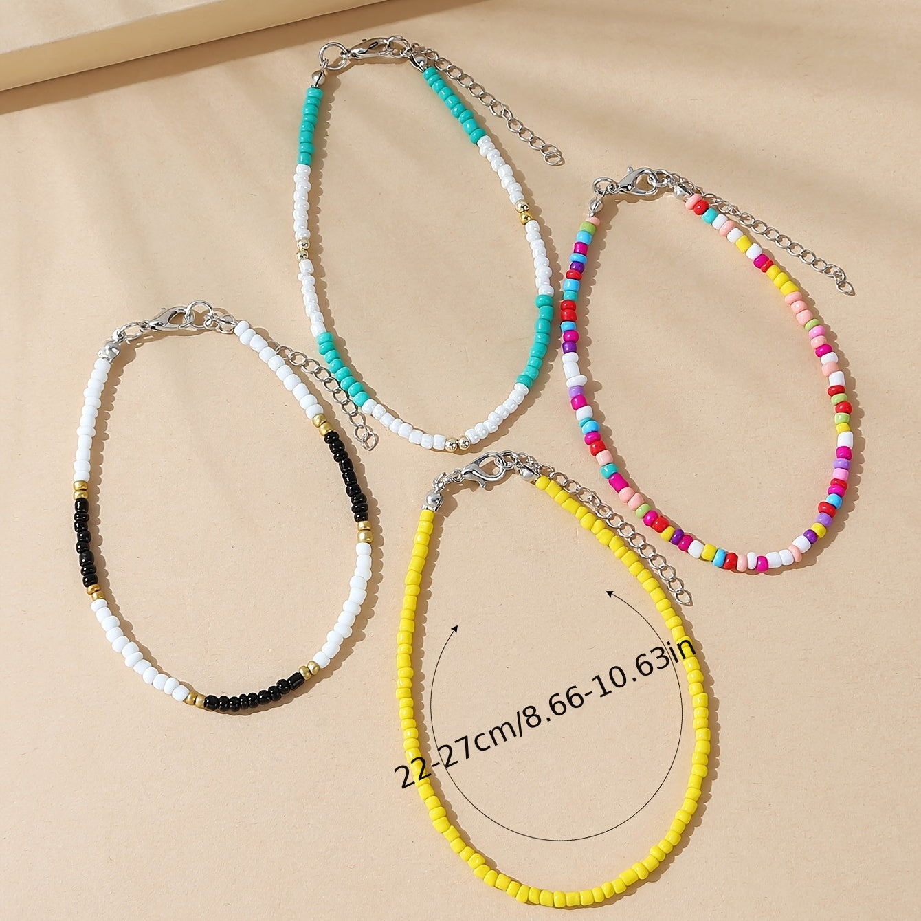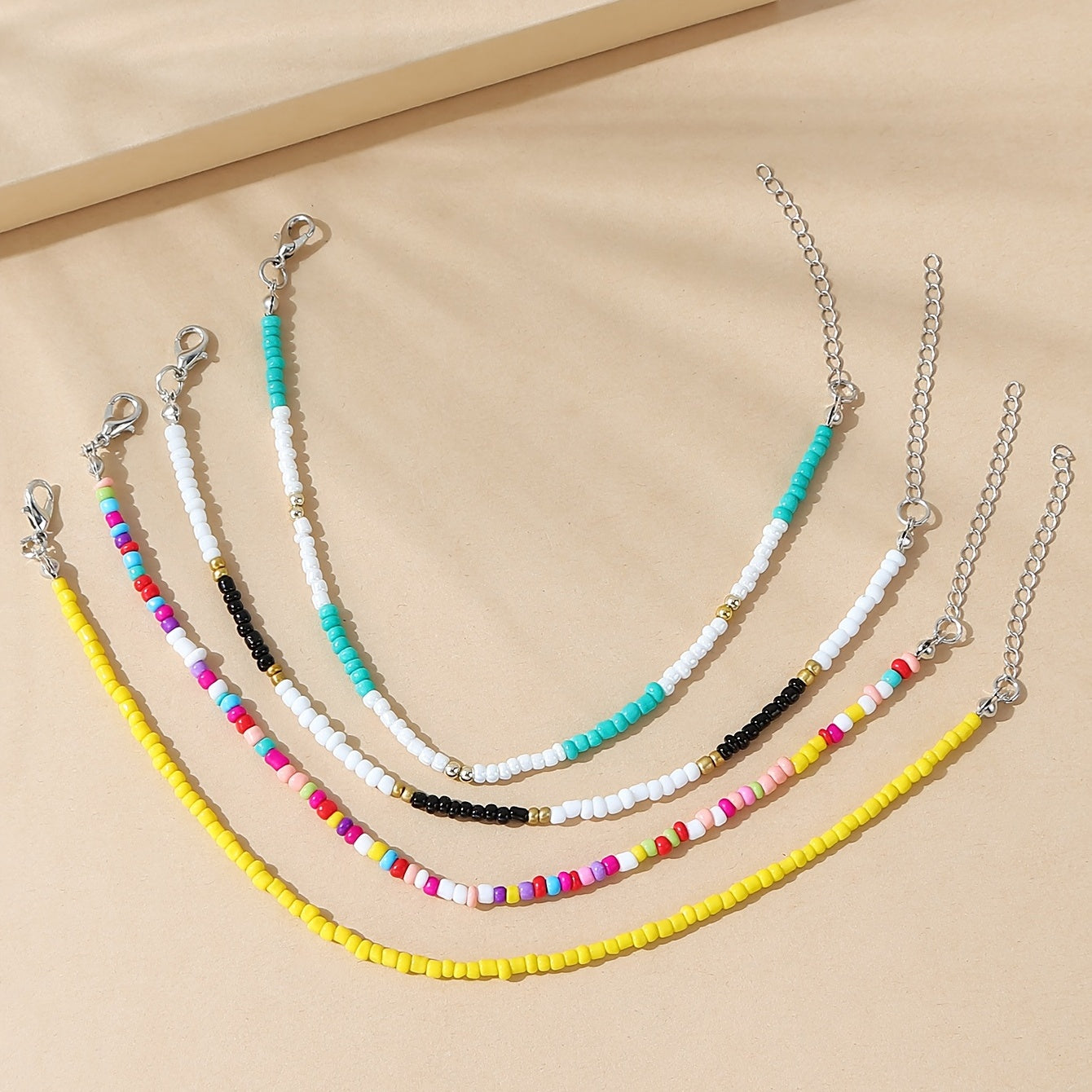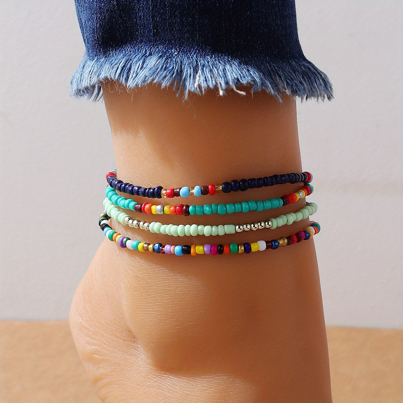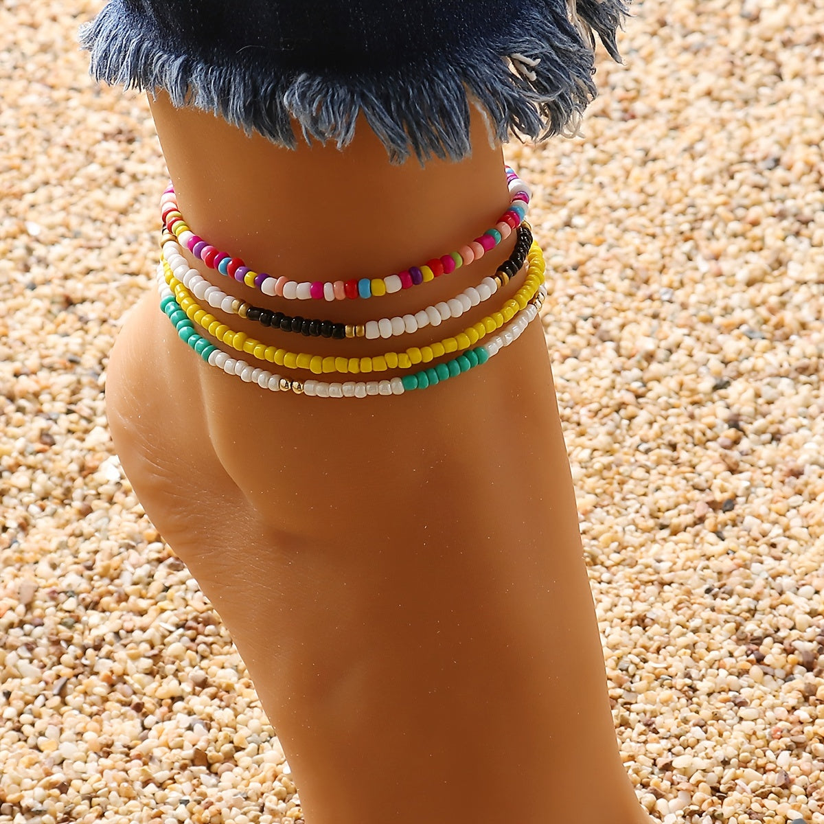 Add a touch of summer beach vibes with this sweet vintage beaded ankle bracelet set. Each anklet is crafted with colorful rice beads for a fun and vibrant look.